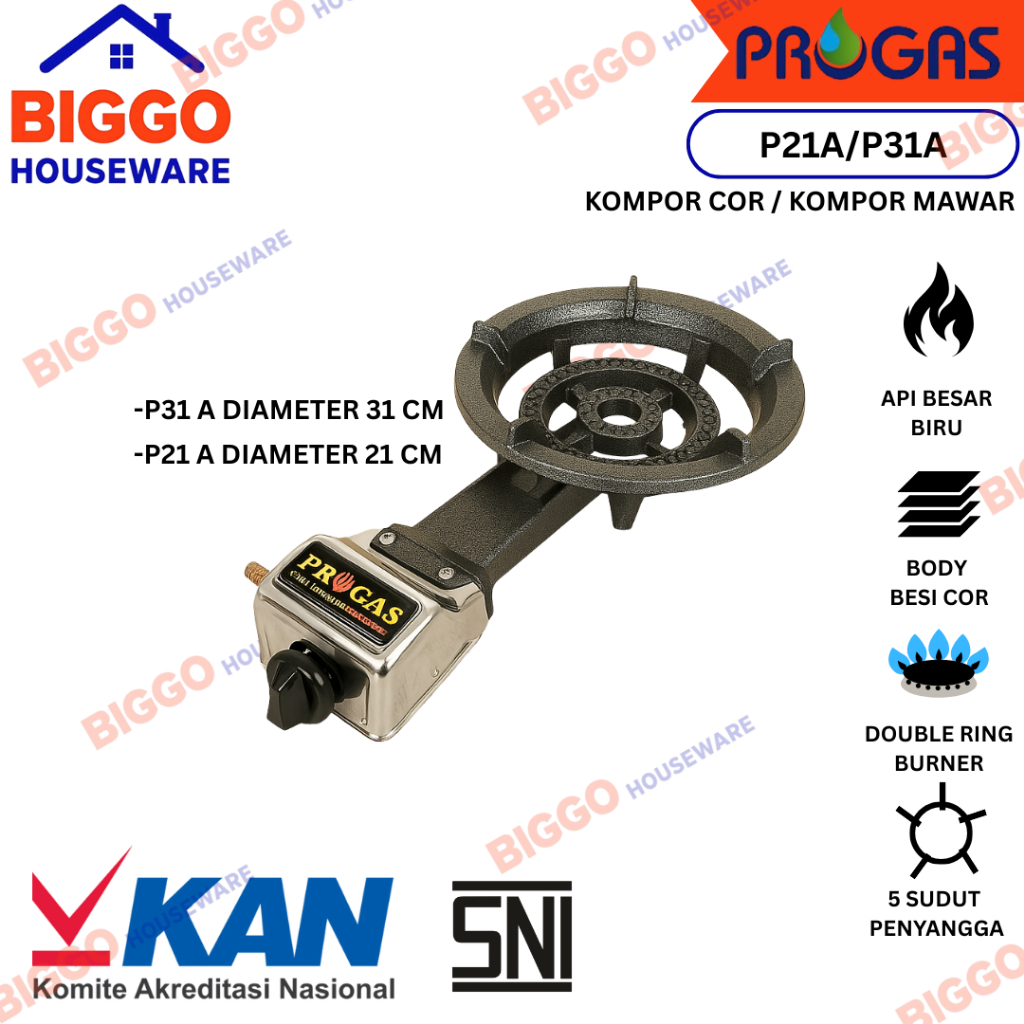 PROGAS Kompor COR Mata Api Seribu Komersial / Kompor 1 Tungku Mawar P21A / P31A / P11A Api Biru SNI