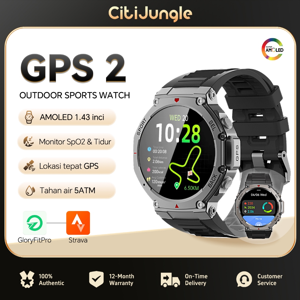Citijungle Smartwatch GPS2 Support Strava | 5ATM Waterproof Renang | Kompas Digital | AMOLED 1.43” | Bluetooth Call | 10