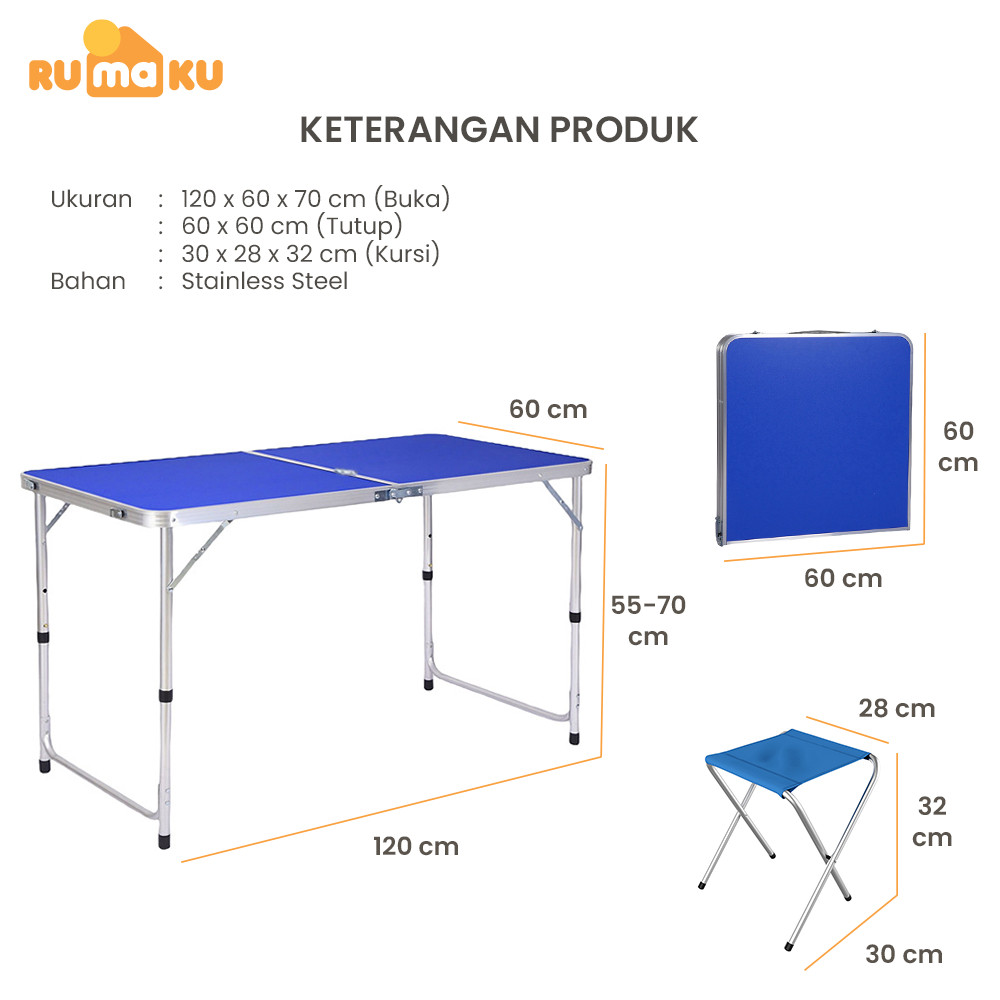 RUMAKU Meja Lipat Jualan Outdoor Piknik Camping Foldable Desk Portable Model Koper Free 2 Kursi