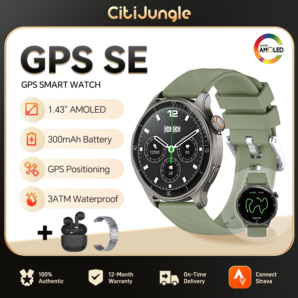 [Paket Promo]Citijungle Smartwatch GPSSE 1.43" AMOLED Tahan Air 3ATM Kompas Tekanan Udara Bluetooth 5.3 Jam Tangan Pinta