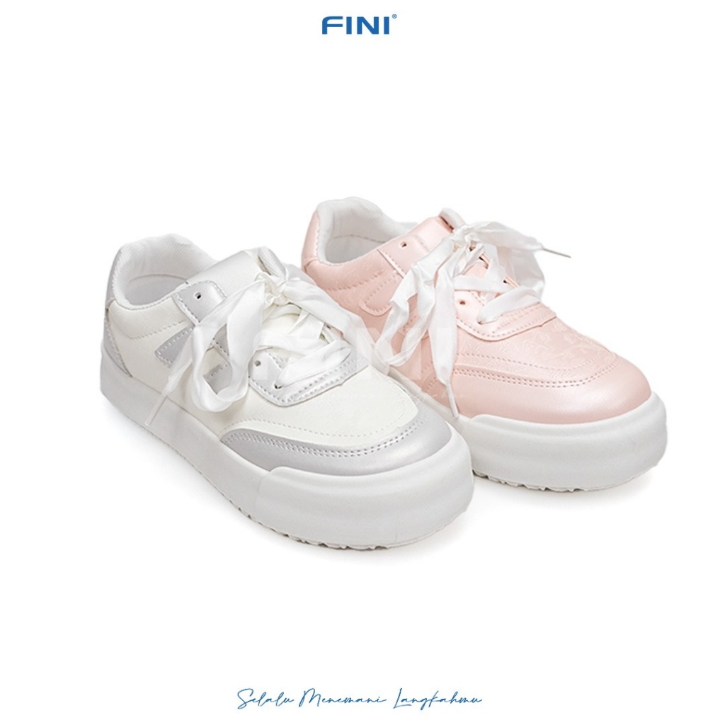 FINI, Sepatu Sneakers Wanita Dewasa Model Tali Kain, Warna Pink Putih, Ukuran 37-40, H-1