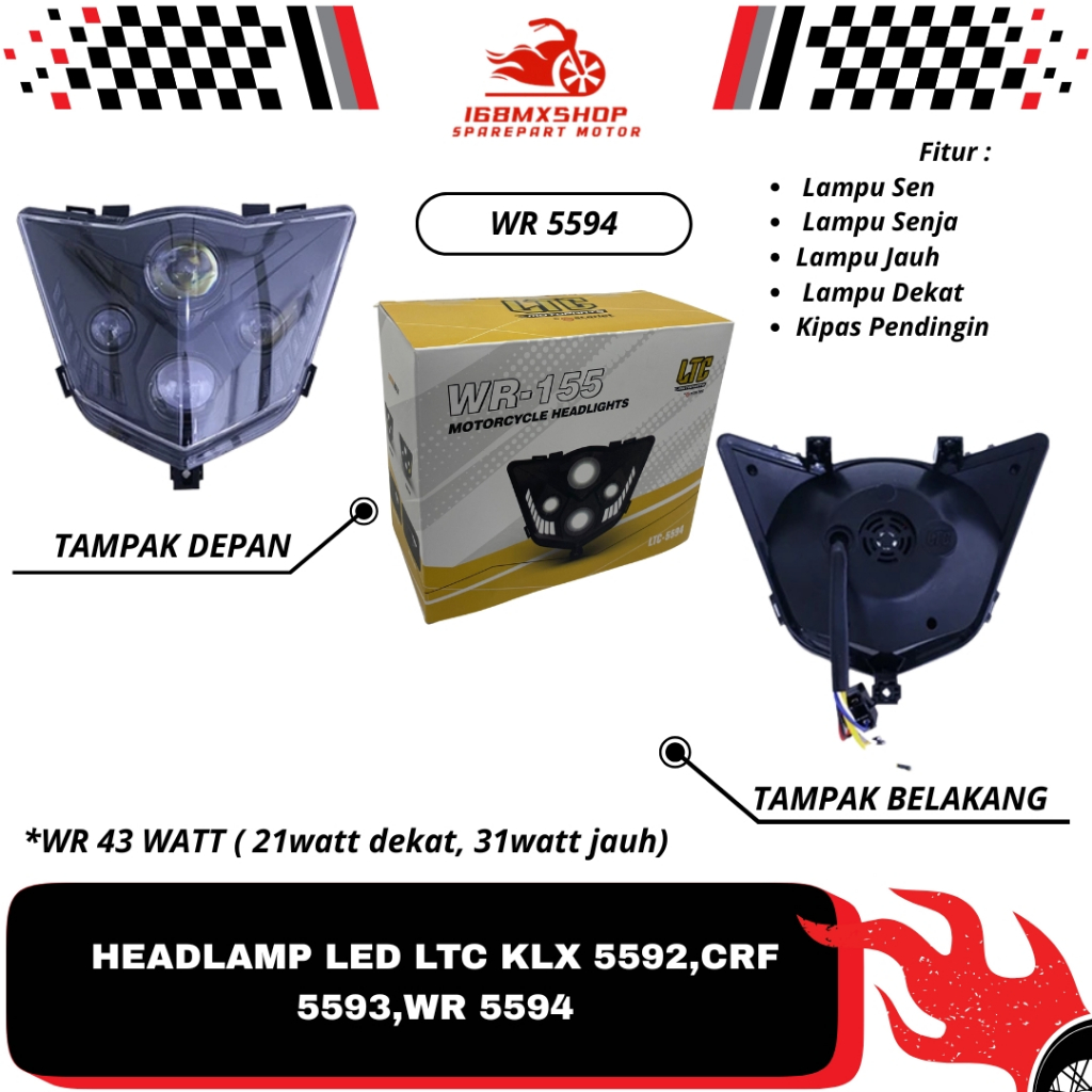 Reflektor LED Lampu Depan Sorot Headlamp LTC Motor KLX CRF WR