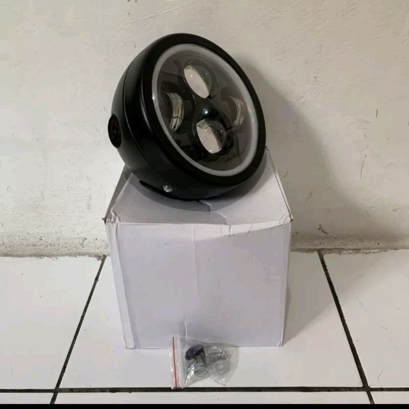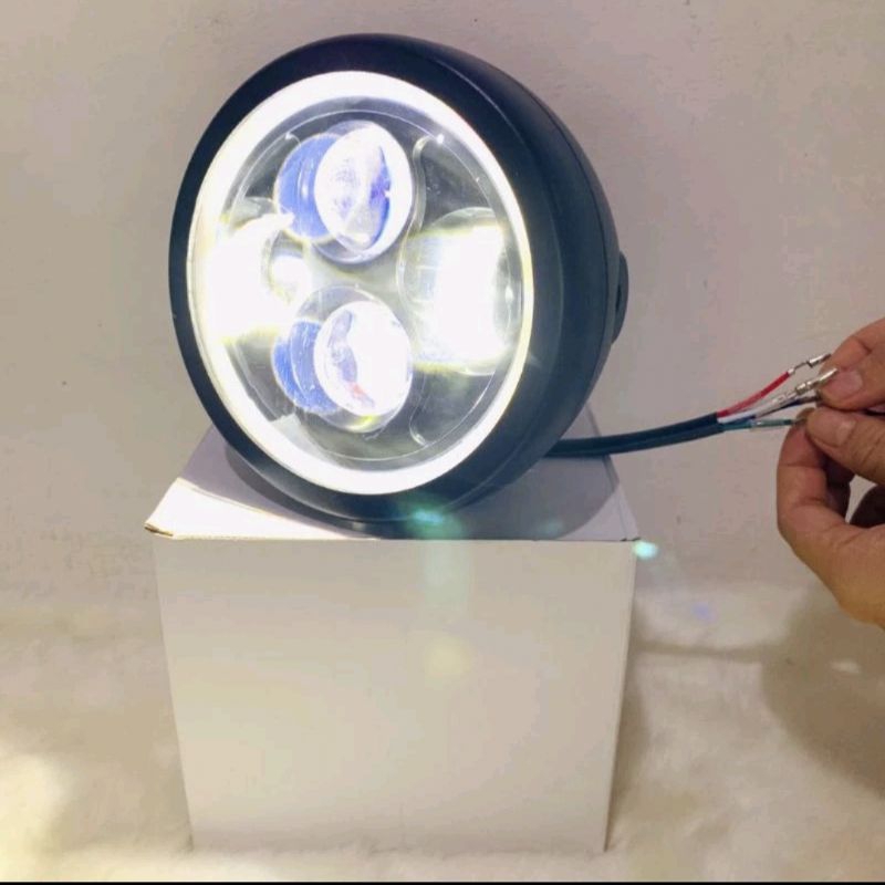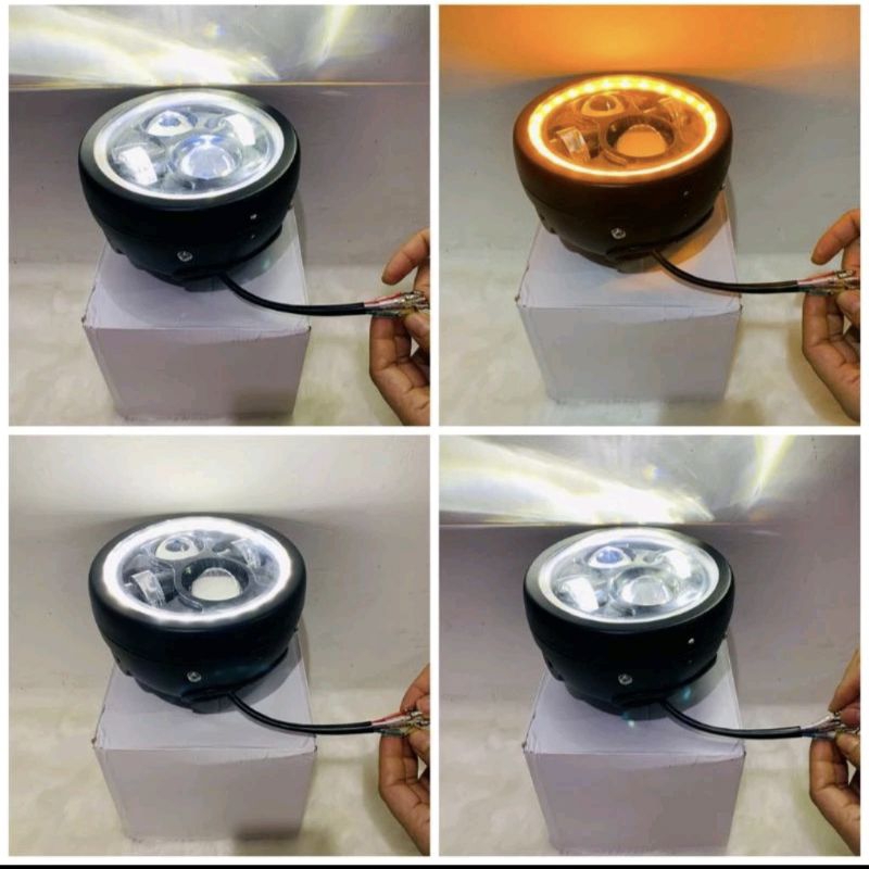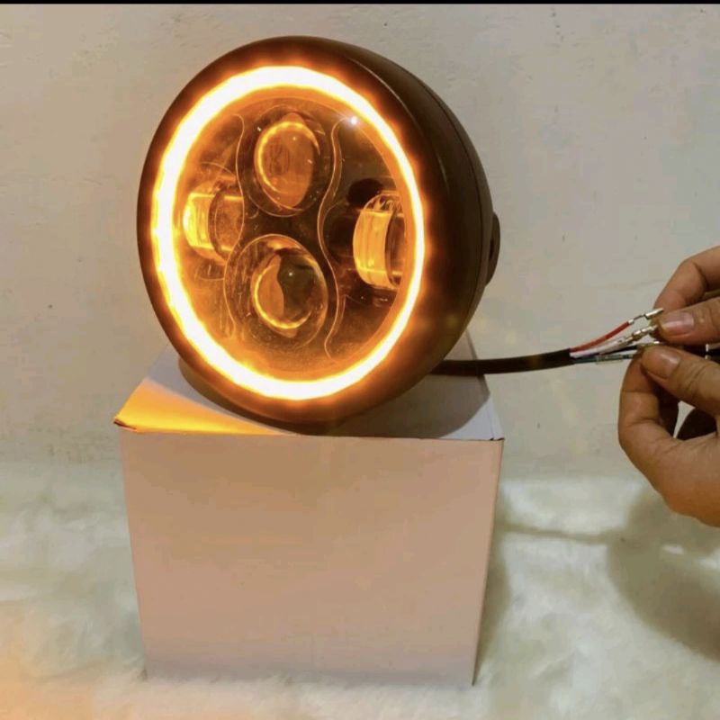 LAMPU DEPAN LED ANGEL EYE PUTIH DAN OREN REFEKTOR 5,75INCH PLUS BATOK