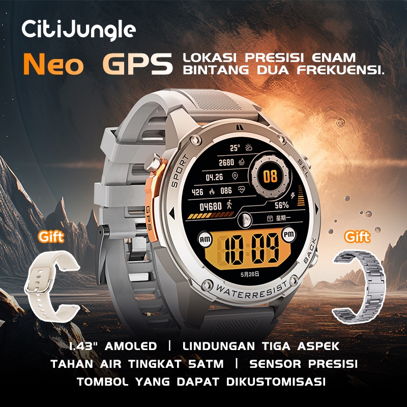 Citijungle NeoGPS(DM56)Smartwatch GPS Map 1.43" AMOLED Touchscreen Waterproof 5ATM Kompas Bluetooth Call Altitude Tekana