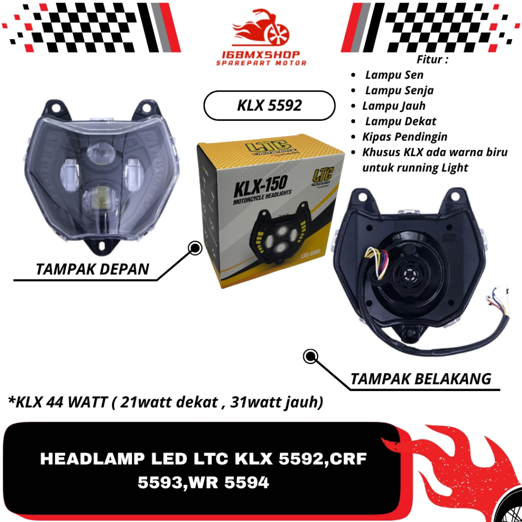Reflektor LED Lampu Depan Sorot Headlamp LTC Motor KLX CRF WR