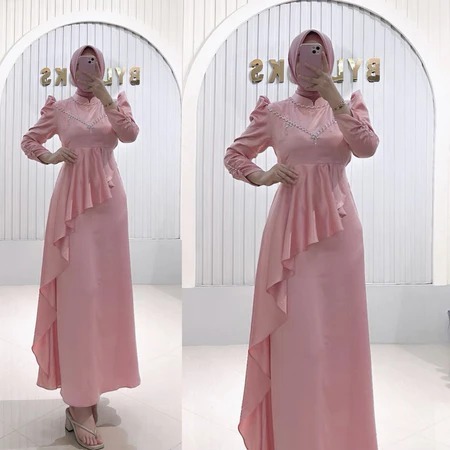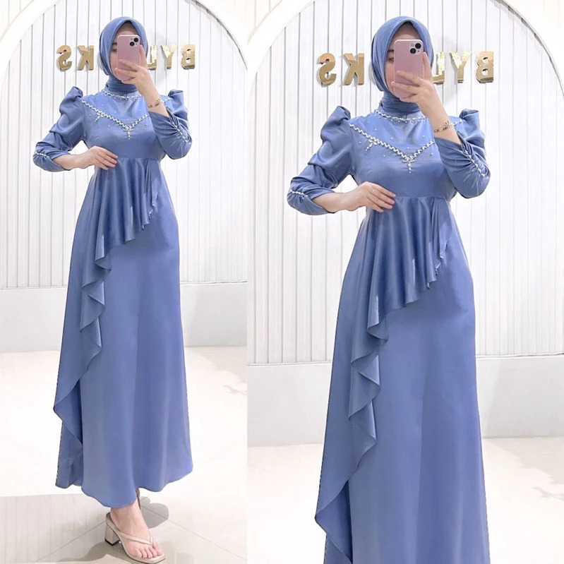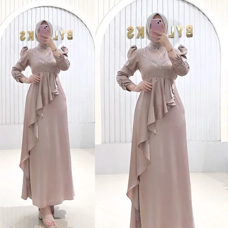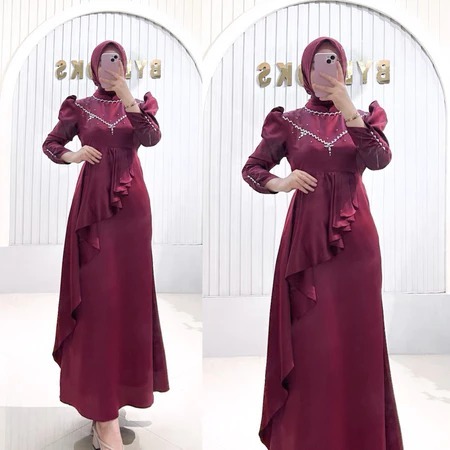 Kharisma Rashiqa Dress Gamis Baju Gaun Satin Silk Tile Mermress Polos Burgundy Duyung Bridesmaid Kondangan Wisuda Lamara