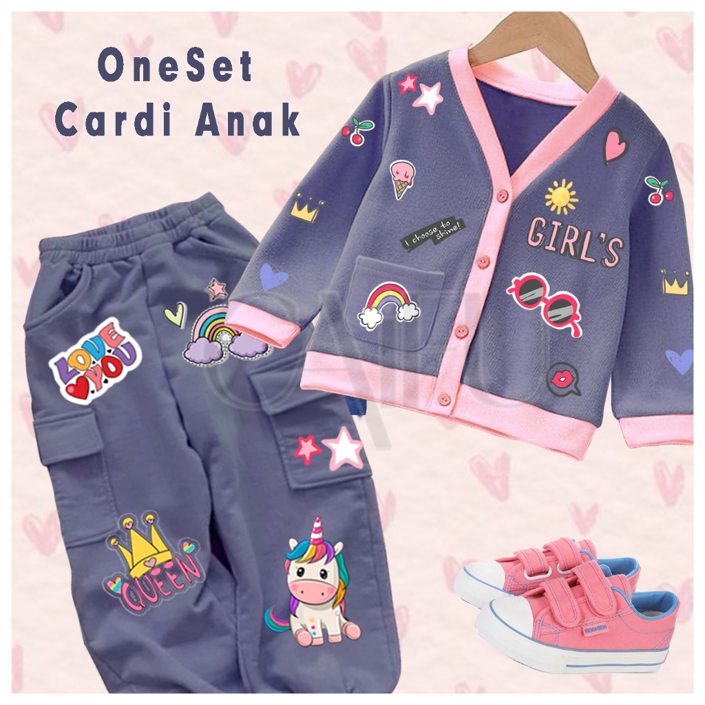 setelan anak Setelan Cardigan Anak Perempuan Kiyowo Multicolour Celana Cargo Anak Anak 2-10 Tahun Lengan Panjang Bunda P