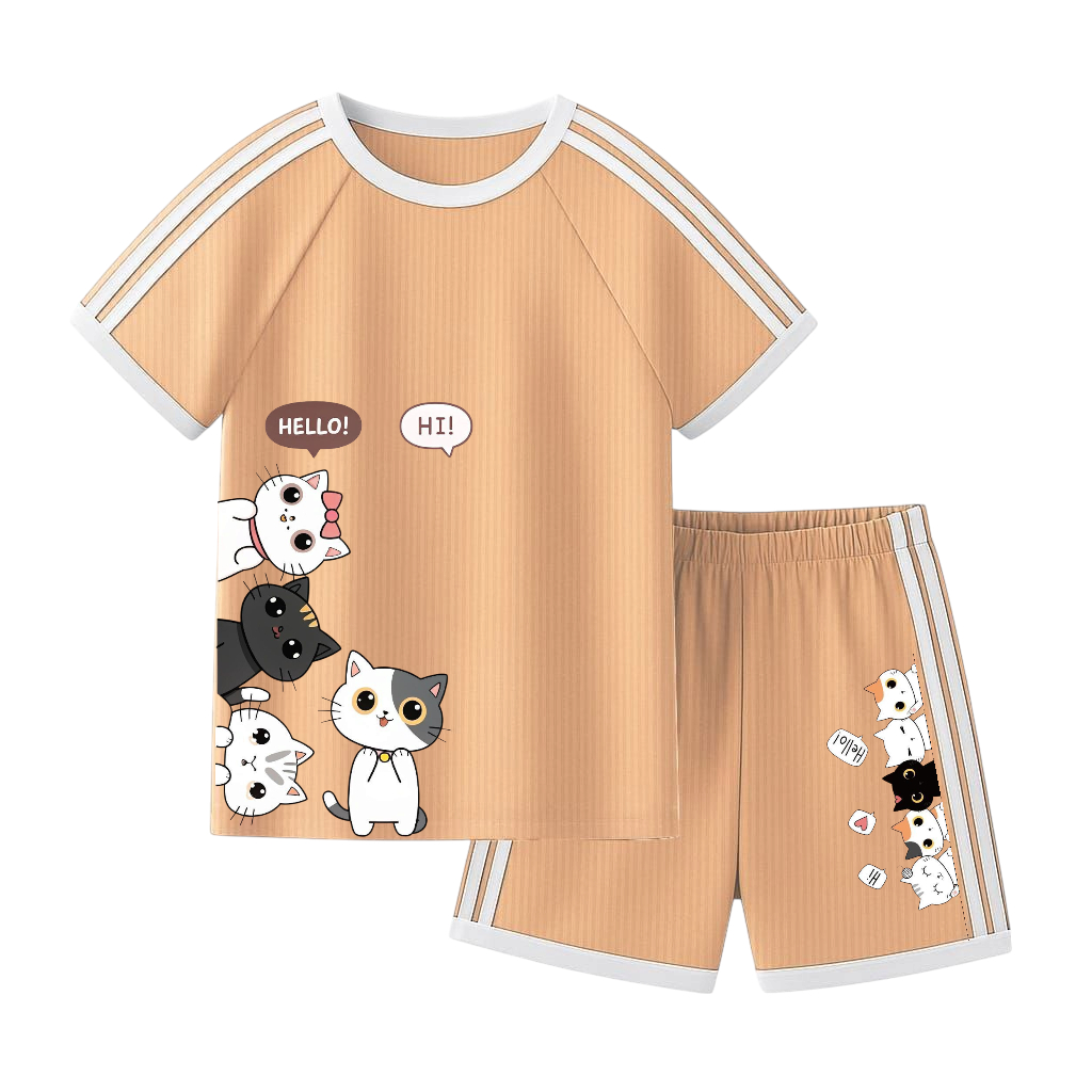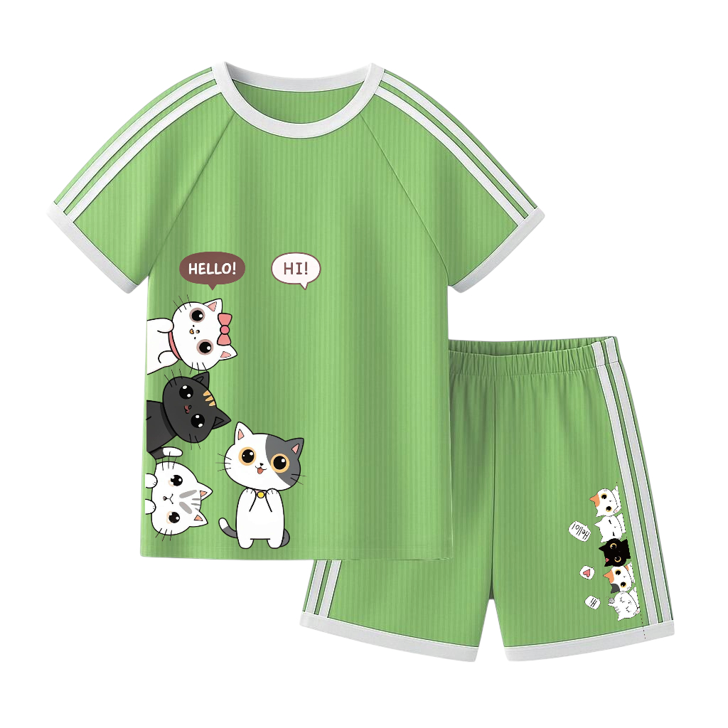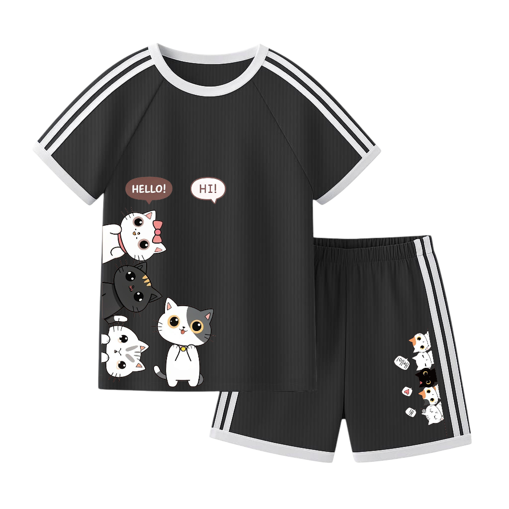 setelan anak Setelan lengan pendek printing CUTE CAT setelan anak perempuan um ur 1-10 tahun