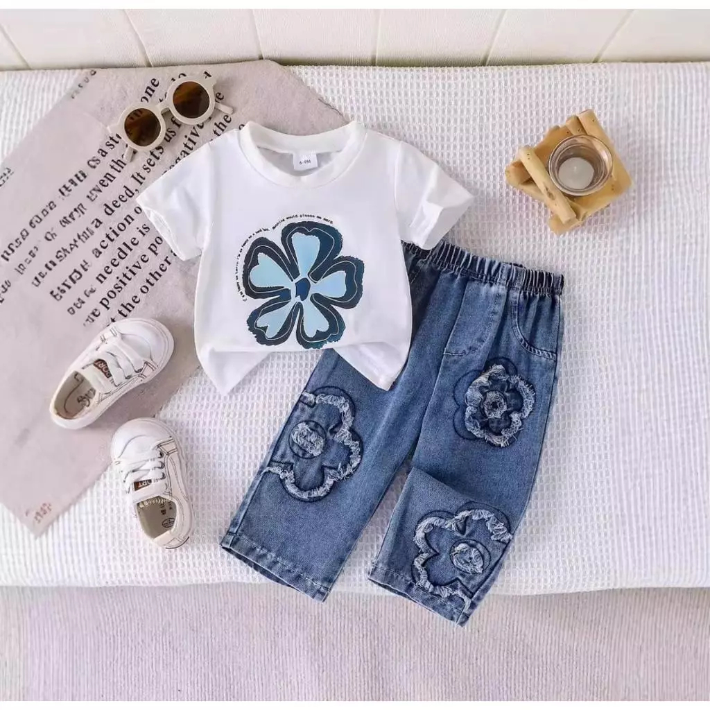 setelan anak SETELAN ANAK PEREMPUAN MODEL BUNGA/SETELAN JEANS MOTIF BUNGA DAN BAJU BUNGA