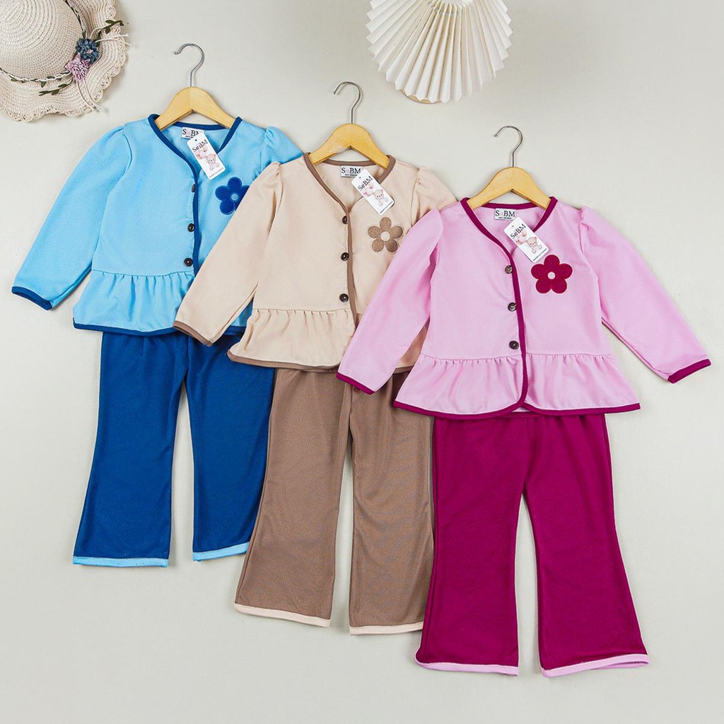 setelan anak Najwa - Setelan Anak Blumi Bordir Bunga dan Kucing Korean Style Terlaris / Fashion Oneset Anak Perempuan At