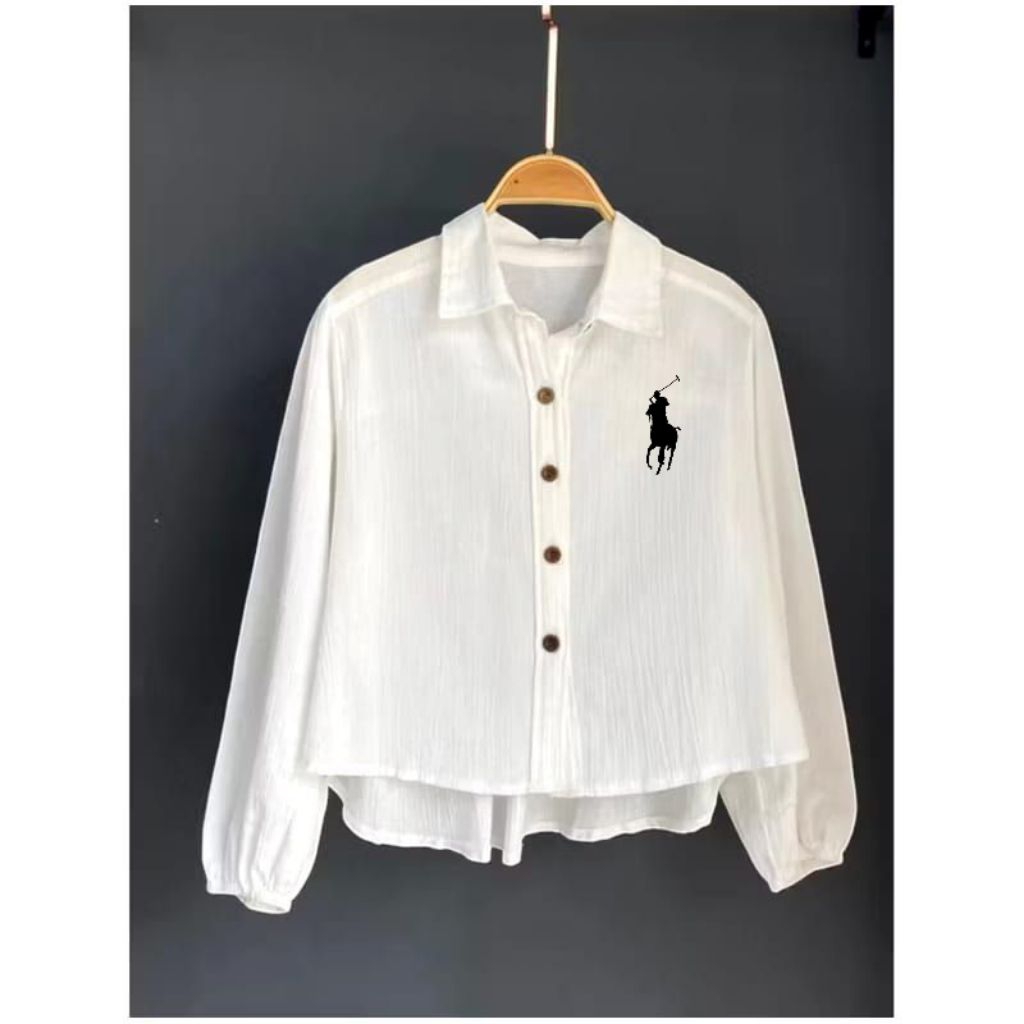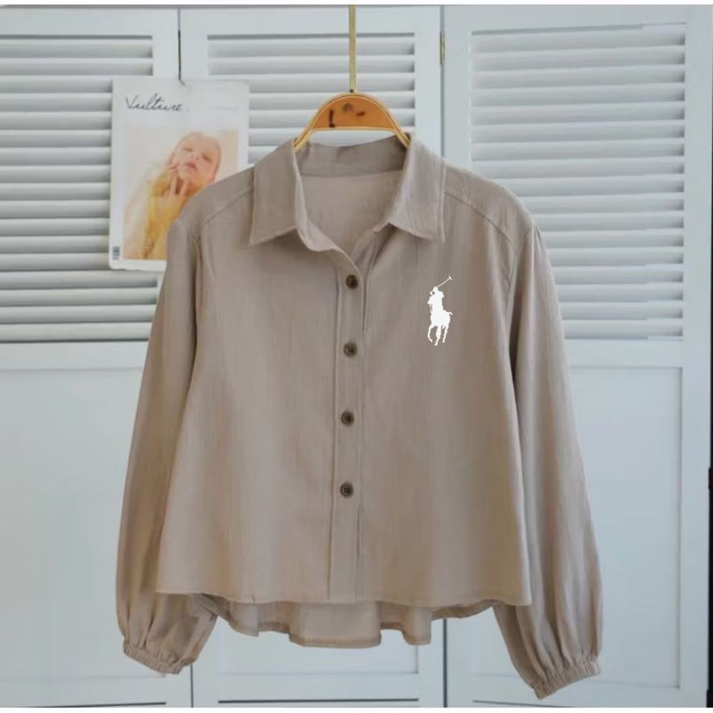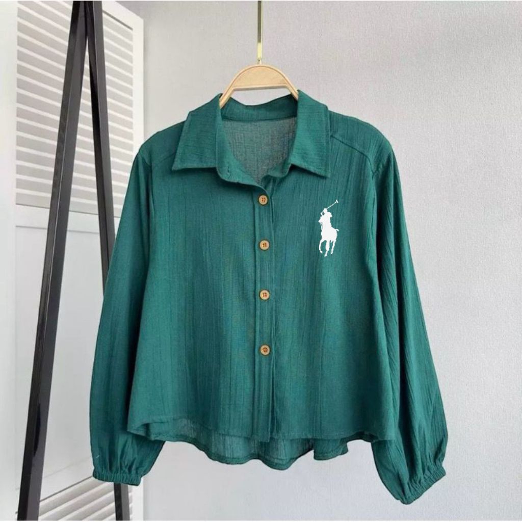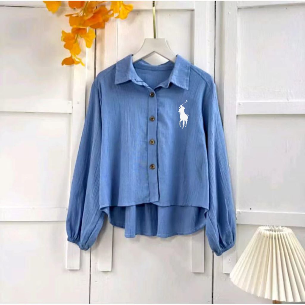Kemeja Wanita Korean Style Crop Top Lengan Panjang Blouse Atasan Lengan Balon