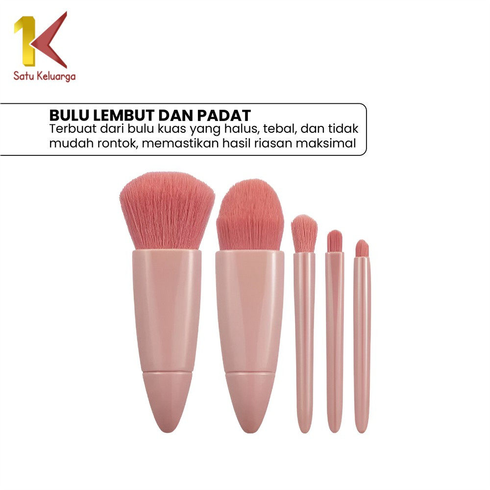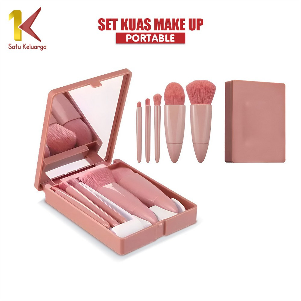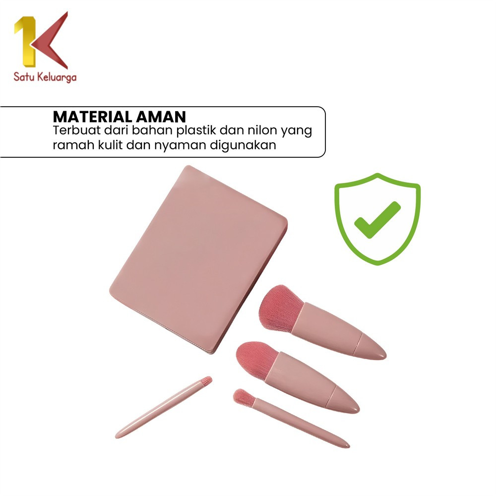 EC Satu Keluarga Set Kuas Make Up Portable K191 Makeup Brush Set 5IN1 With Box Plus Cermin Rias Wanita