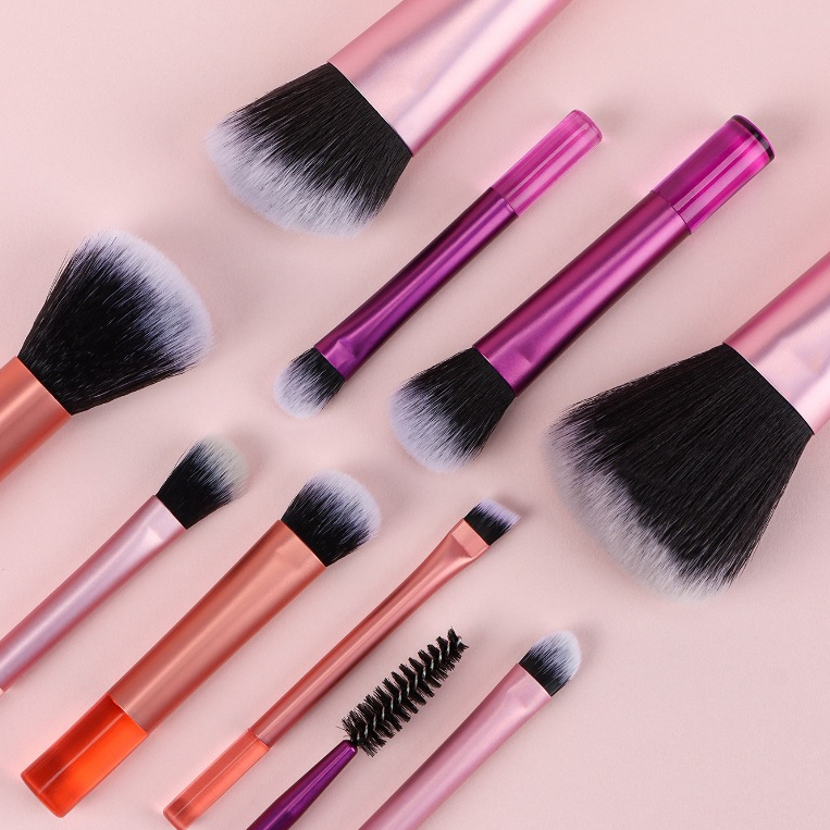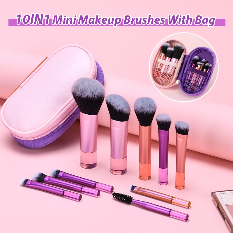 10Pcs Makeup Brush Set With Bag Kuas Rias Mini Lengkap Dengan Tas Portable Untuk Pemula Dengan Tas