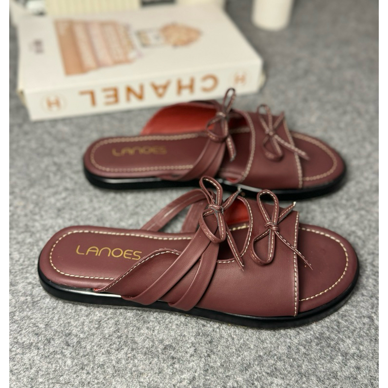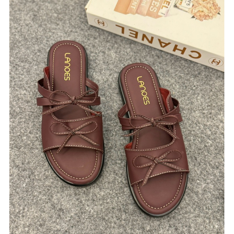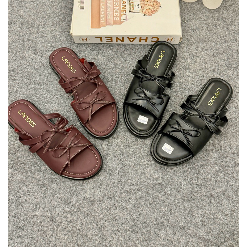 LANOES Sandal Wanita Platform Terbaru Sendal wanita Selop Pita Tali Empuk Viral Kekinian 2025