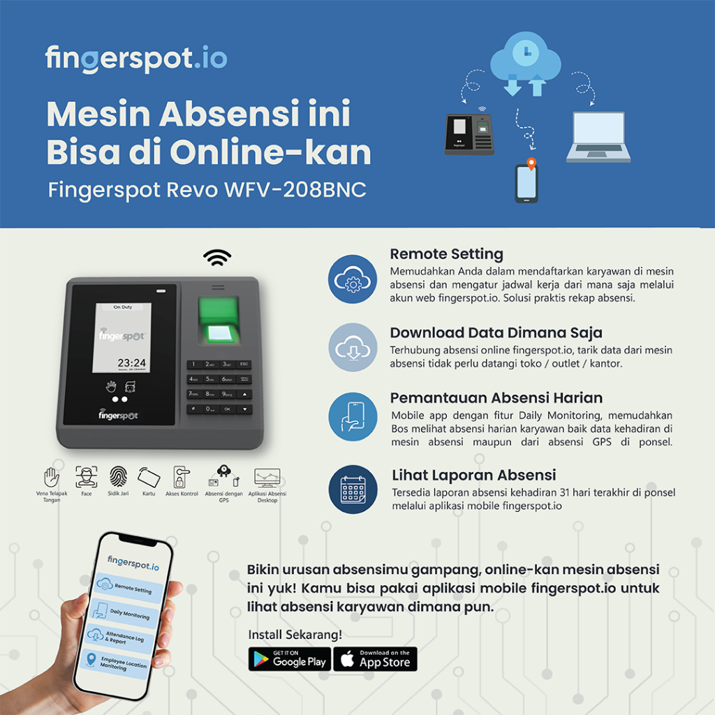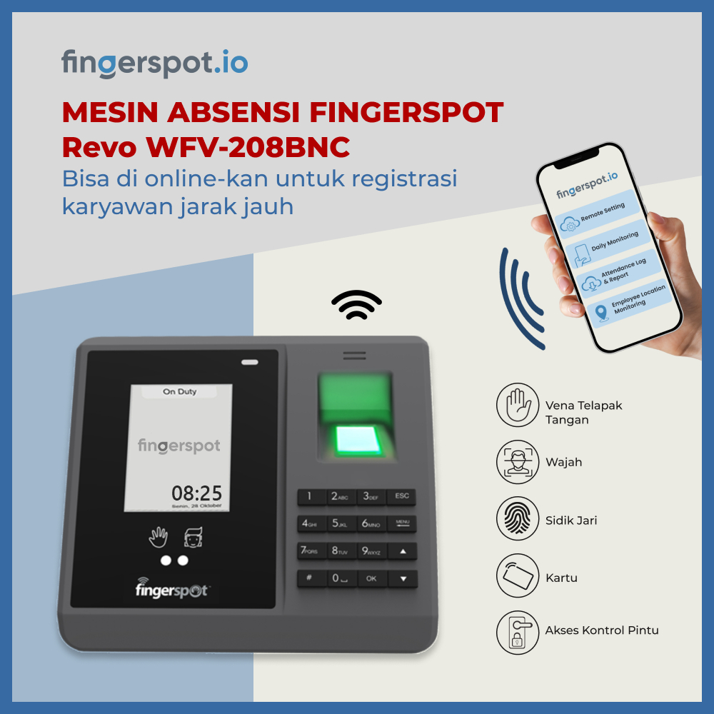 Fingerspot Revo WFV-208BNC | Mesin Absensi Vena Telapak Tangan | WiFi