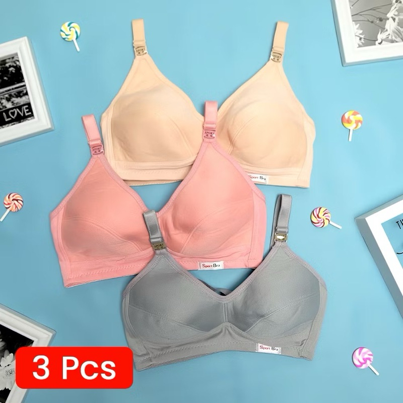 12 PCS Bra BH Jumbo Wanita Sport Bra BH Sport Jumbo Tanpa Kawat Busa Tipis Bahan Full Katun