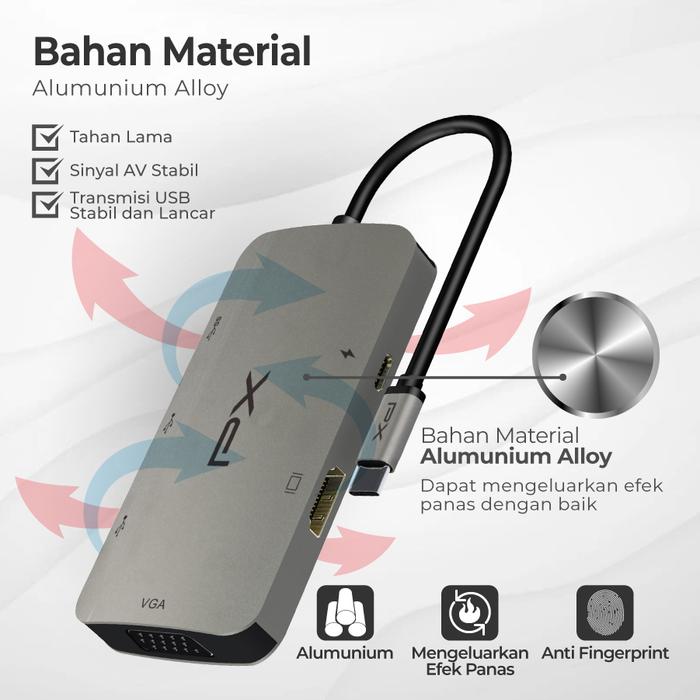USB HUB CONVERTER TYPE C HUB ADAPTER LAPTOP MACBOOK IPAD TABLET TYPE C 3.1 TO HDMI 4K USB VGA TYPE C POWER DELIVERY 100W 6 PORT 6 IN 1 PX UCH60