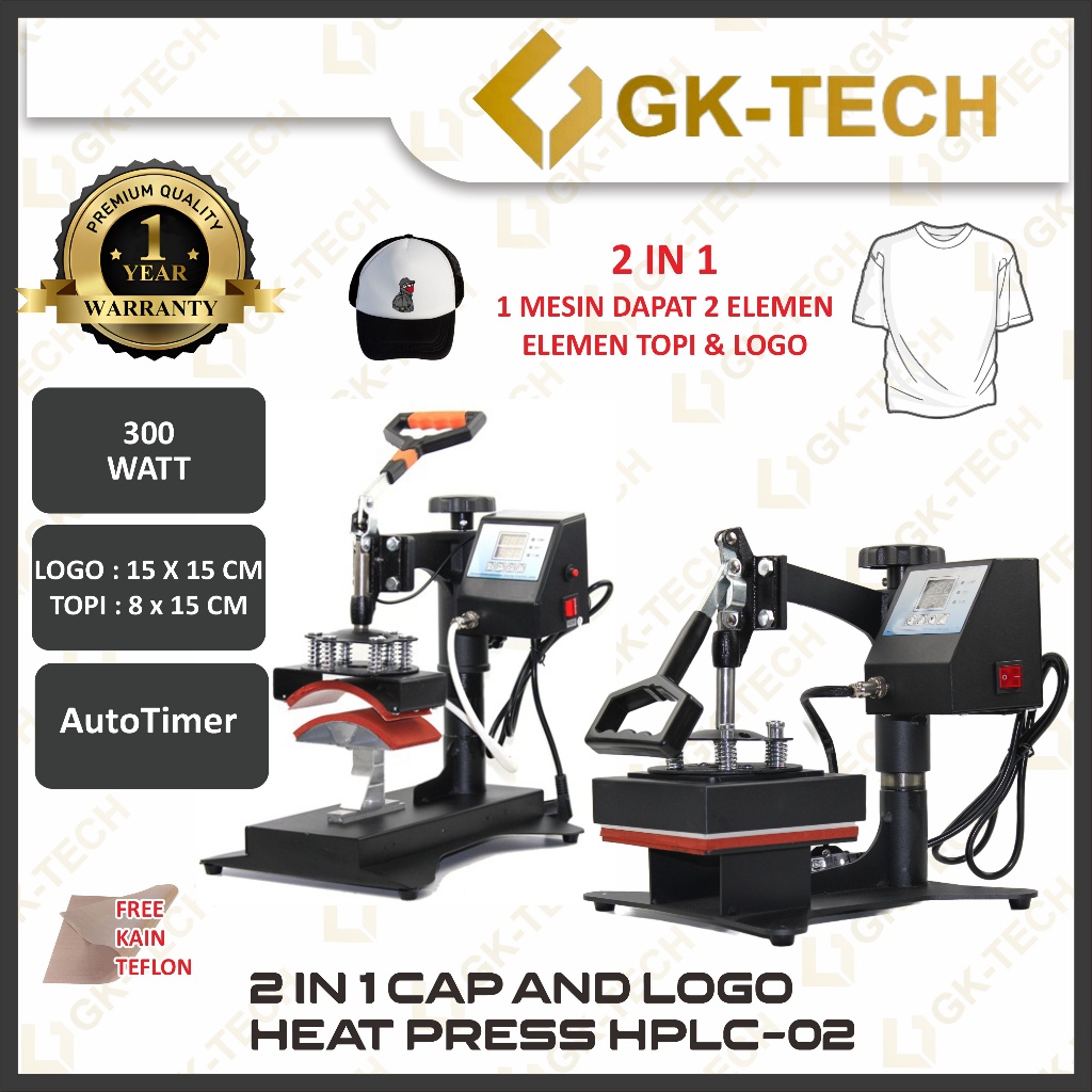 Mesin Press Sablon Topi / Logo / Logo dan Topi Premium - Cap / Logo Heat Press Machine GK-TECH