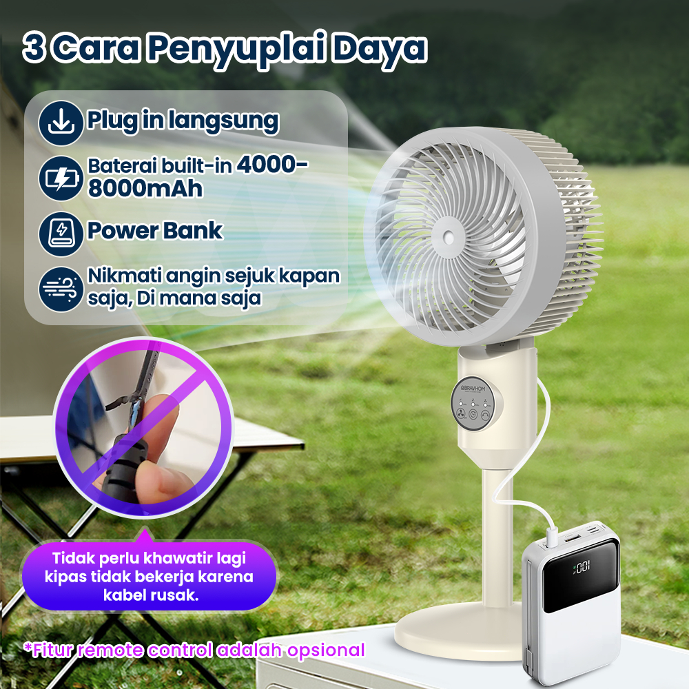 BRAVHOM Kipas Angin Berdiri Aesthetic Dinding 3IN1 4000-8000mAh Remote Aromaterapi Waktu 3-8Jam FN66