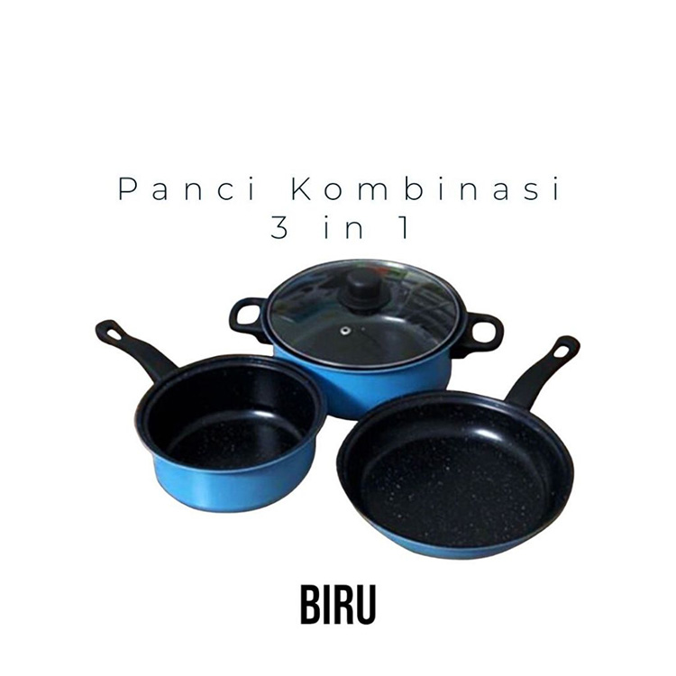 Panci Set 3 IN 1 Anti Lengket Panci Isi 3 Tutup Kaca Panci Set Pot Cookware Set Anti Lengket