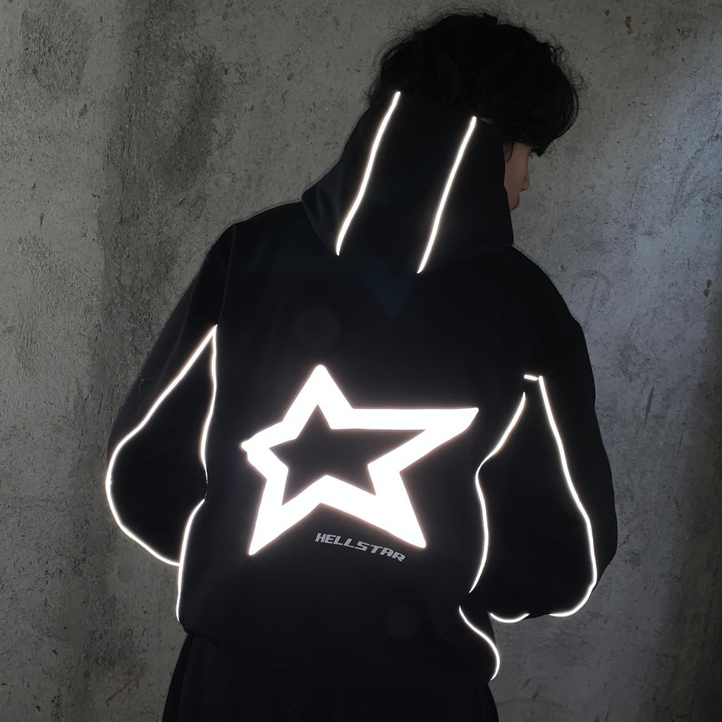 HOODIE BOXY REFLEKTIF DESAIN JAKET GARIS MOTIF HELLSTAR JACKET HOODIE BOXY REGULAR REFLECTIVE SIZE