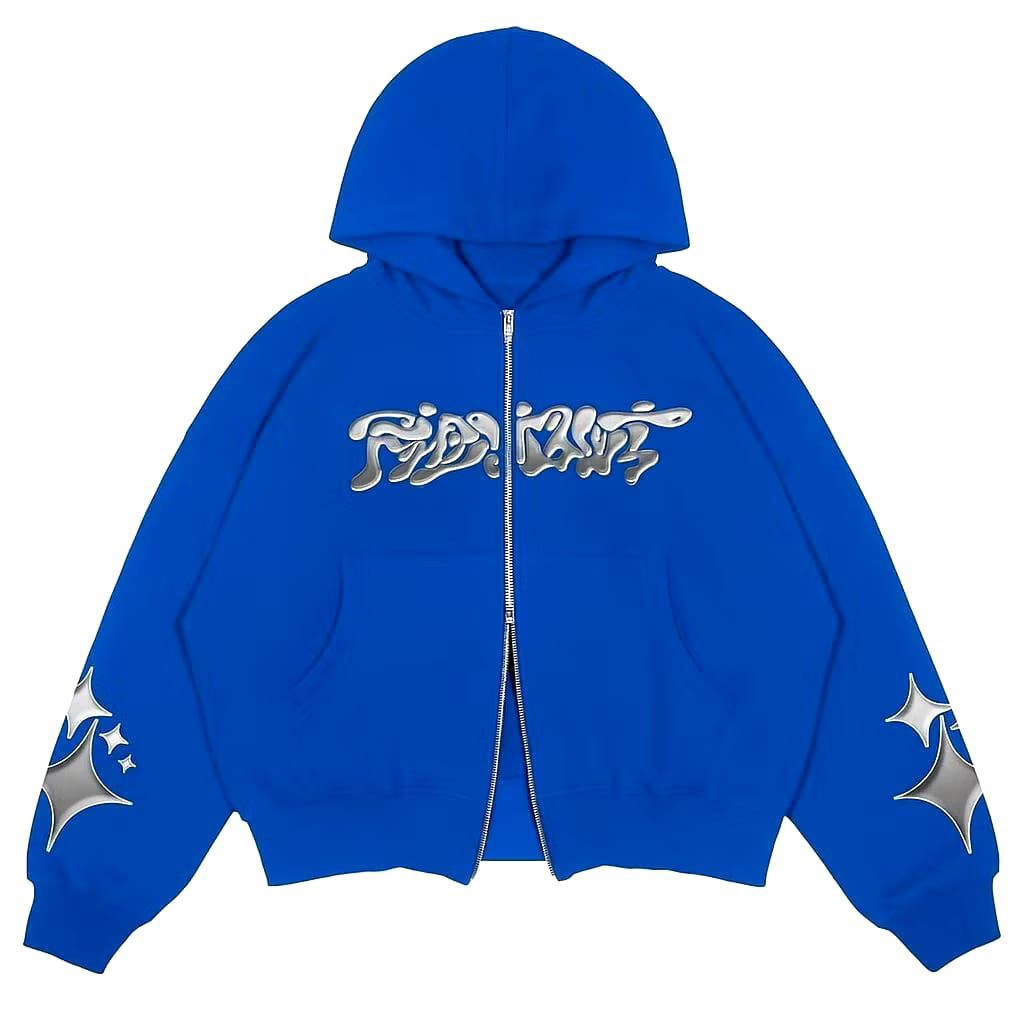 G-LOOK Hoodie Boxy Double Zipper Neregulat Hitam