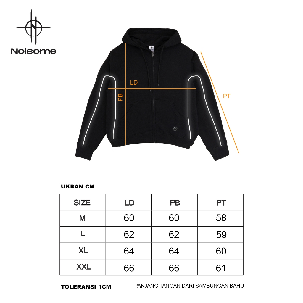 Noisome Hoodie Zipper Boxy Reflective - Basic - Hitam - Fleece