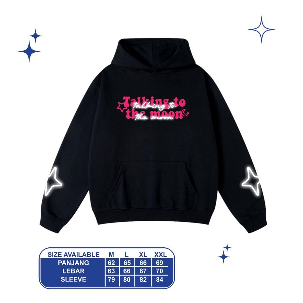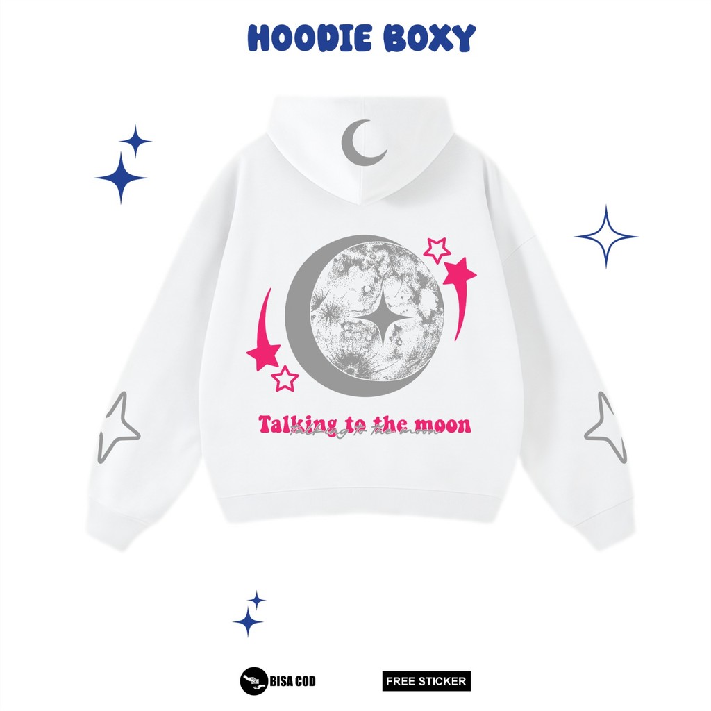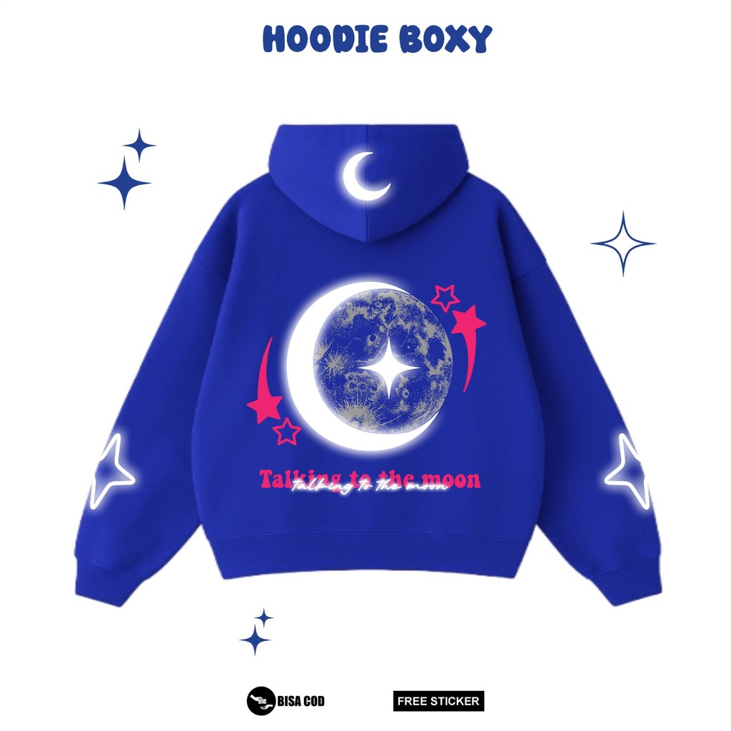 Hoodie Boxy Oversized Reflektif Desain Talking To The Moon Sablon Menyala Bahan Fleece By Narcissm