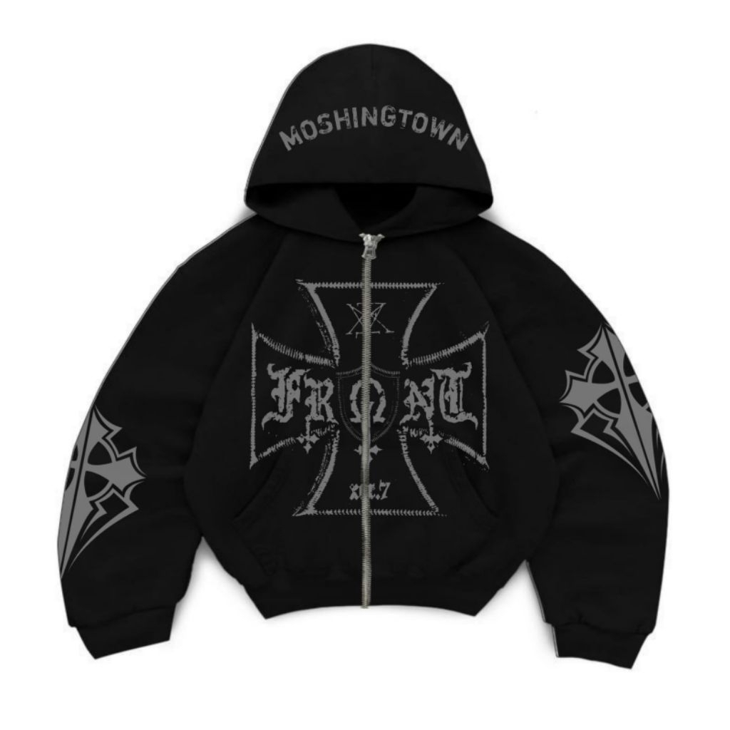 MSTN • Hoodie Boxy Double zipper • Front • Hoodie Boxy bahan Tebal • Hoodie Boxy Cowok Dan Cewek