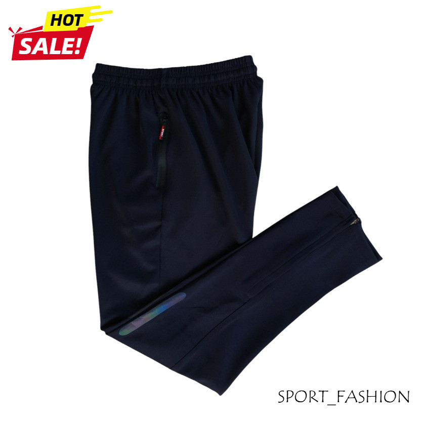 Celana Training Panjang Olahraga Pria Wanita High Waist Bahan Elastis Tebal Warna Hitam