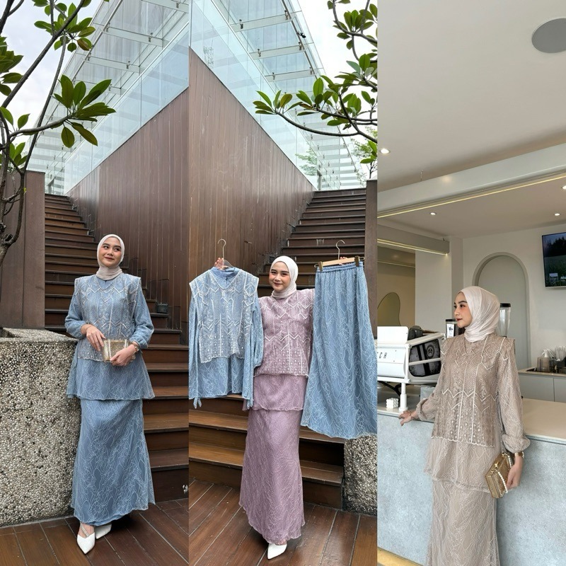 FELISYA SET 3 IN 1 VEST+BLOUSE+SKIRT DRESS BRUKAT PREMIUM GAMIS KONDANGAN WANITA DRESS MUSLIM PESTA TERBARU 2024