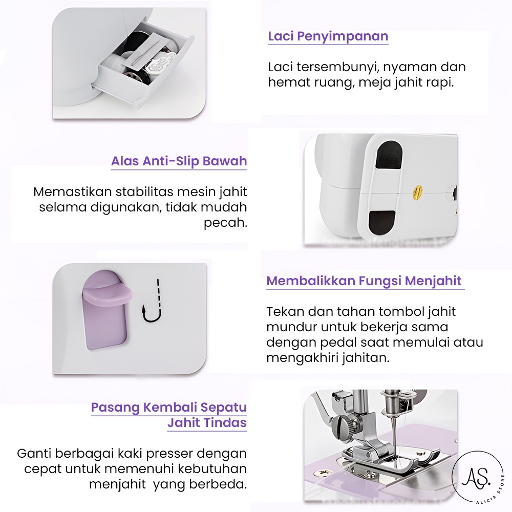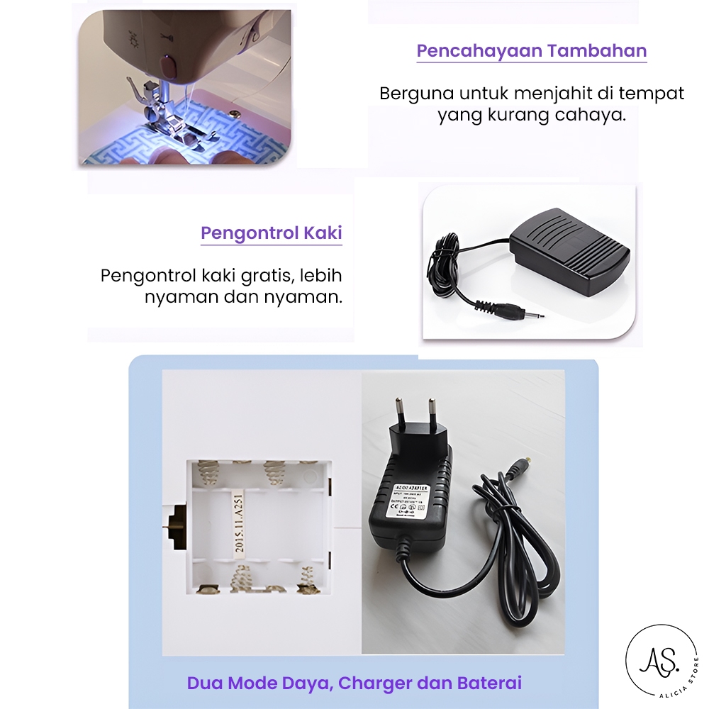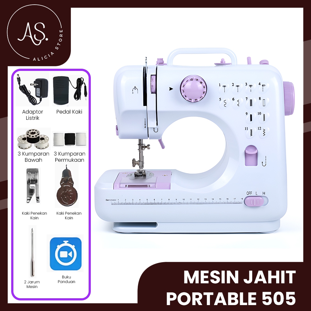 AS Mesin Jahit 505A Dengan 12 Pola Jahitan Pakaian Dengan Listrik/Baterai