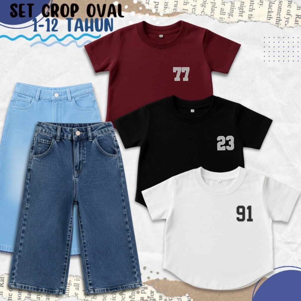 setelan anak SETELAN KAOS CROP TOP OVAL DAN JEANS POLOS ANAK PEREMPUAN 1-10 TAHUN/OOTD CASUAL ANAK