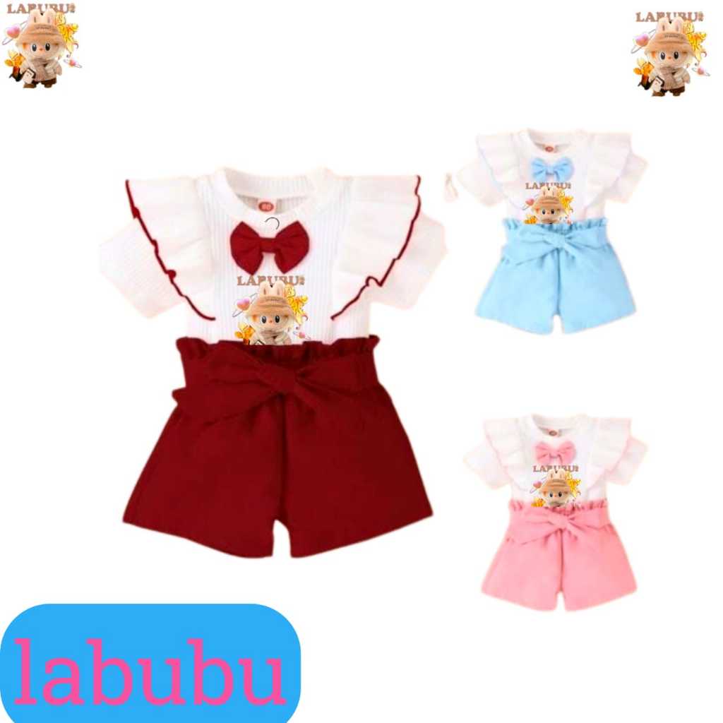 setelan anak BAJU SETELAN DRESS LABUBU ANAK KNITS HORNET UMUR ONE SET CEWEK GEMES 1-6 TAHUN