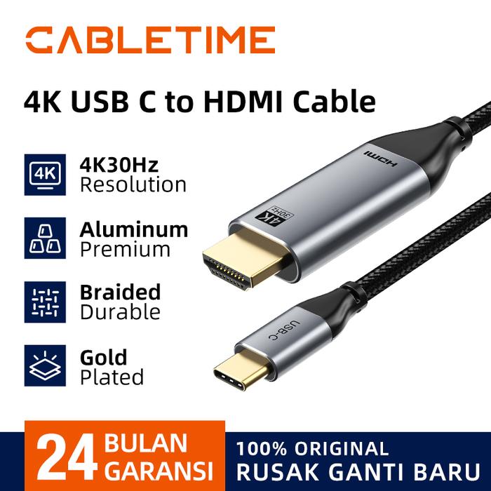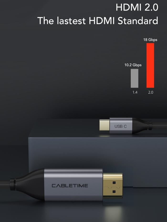 CABLETIME KABEL USB TYPE C TO HDMI THUNDERBOLT 3 CONVERTER HDMI - CC11 90 DEGREE, 1.8M