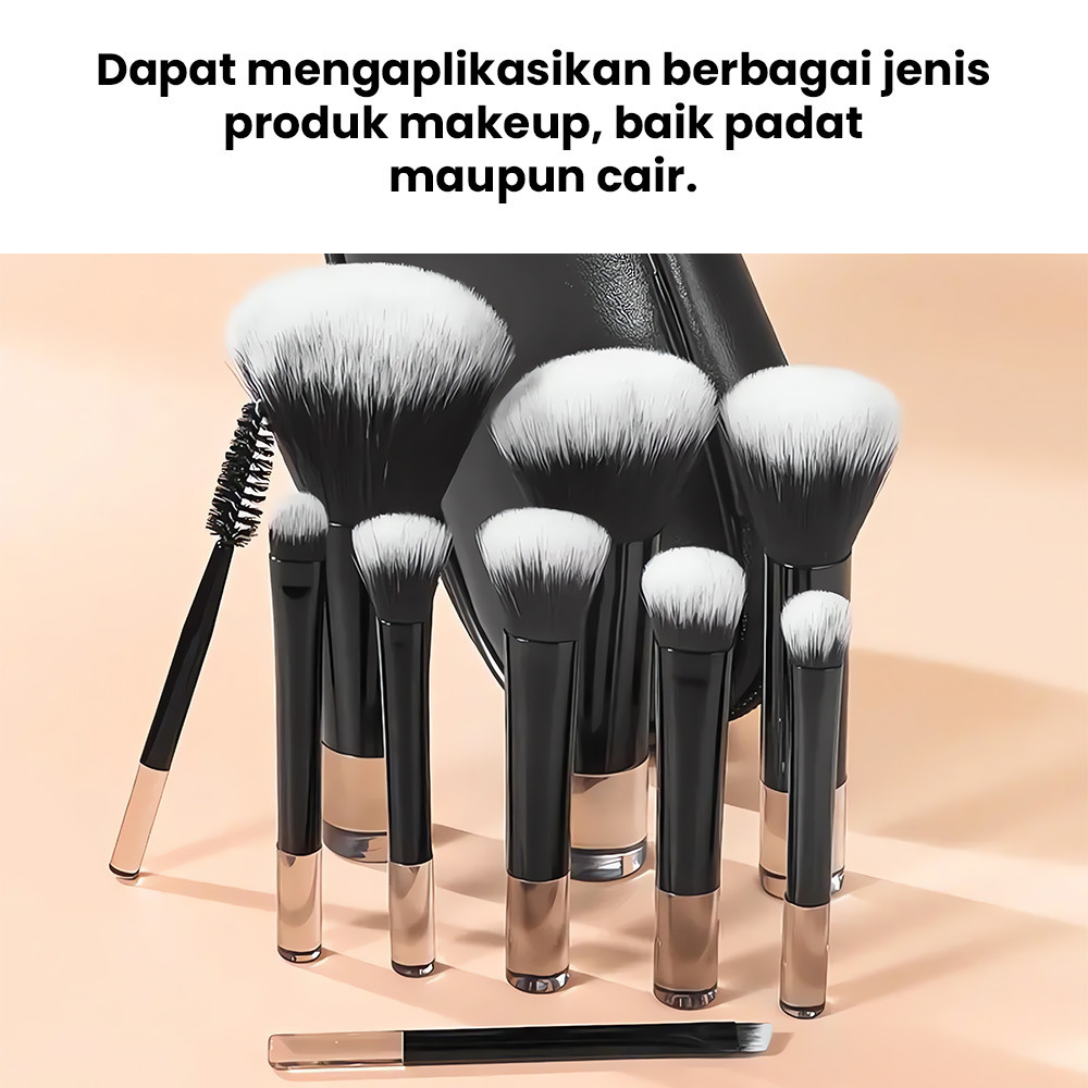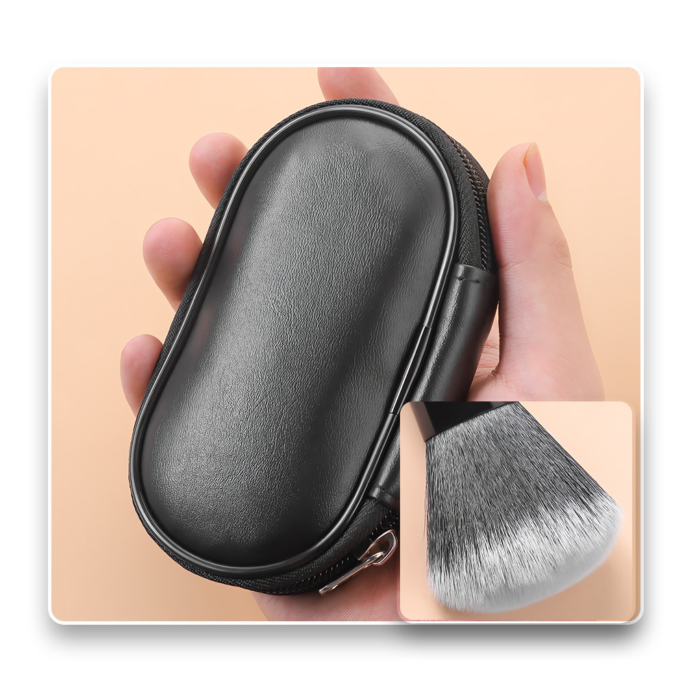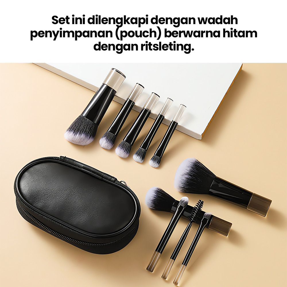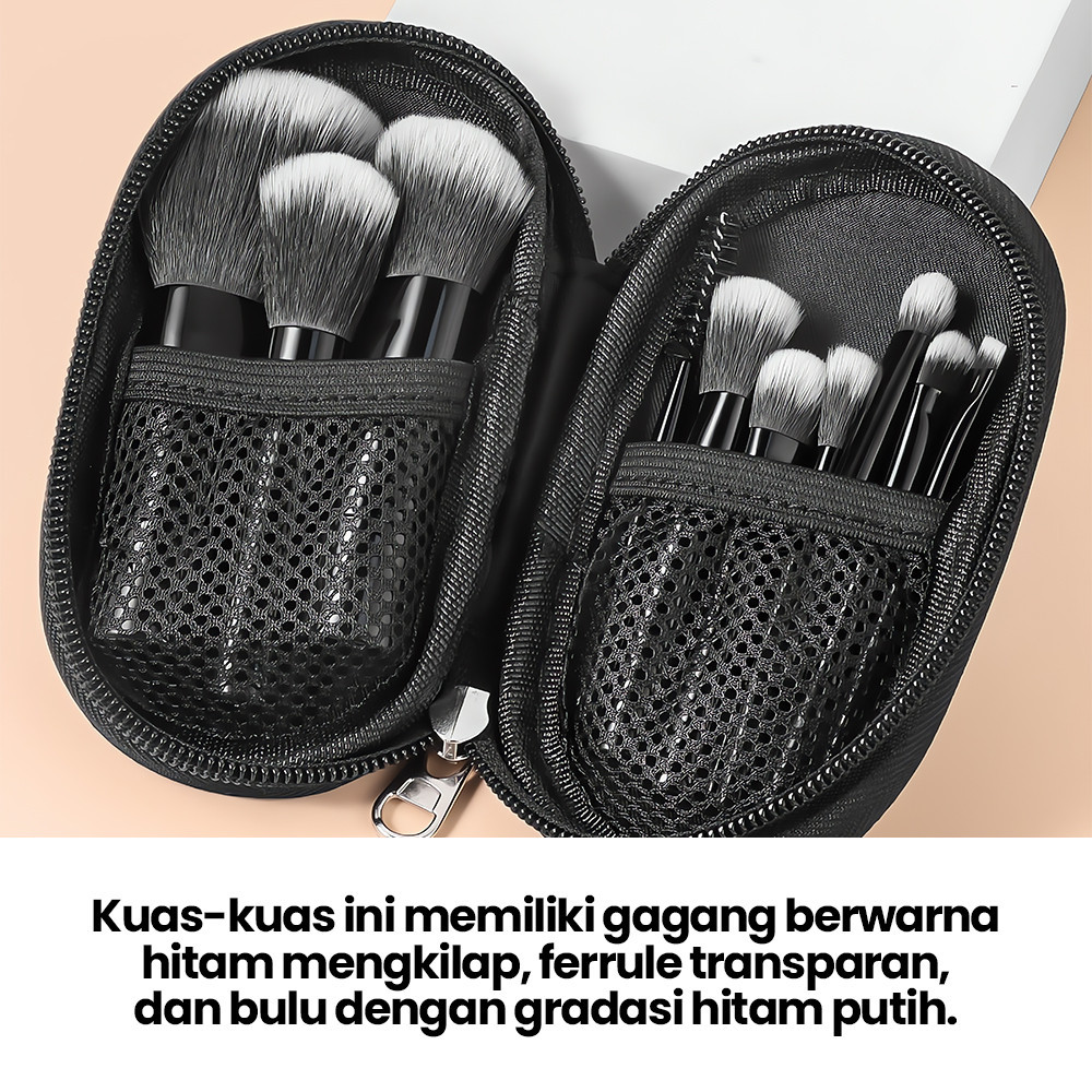 Set 10 kuas makeup khusus perjalanan, set kuas makeup portabel multi-warna dengan pegangan pendek dan tas penyimpanan, s