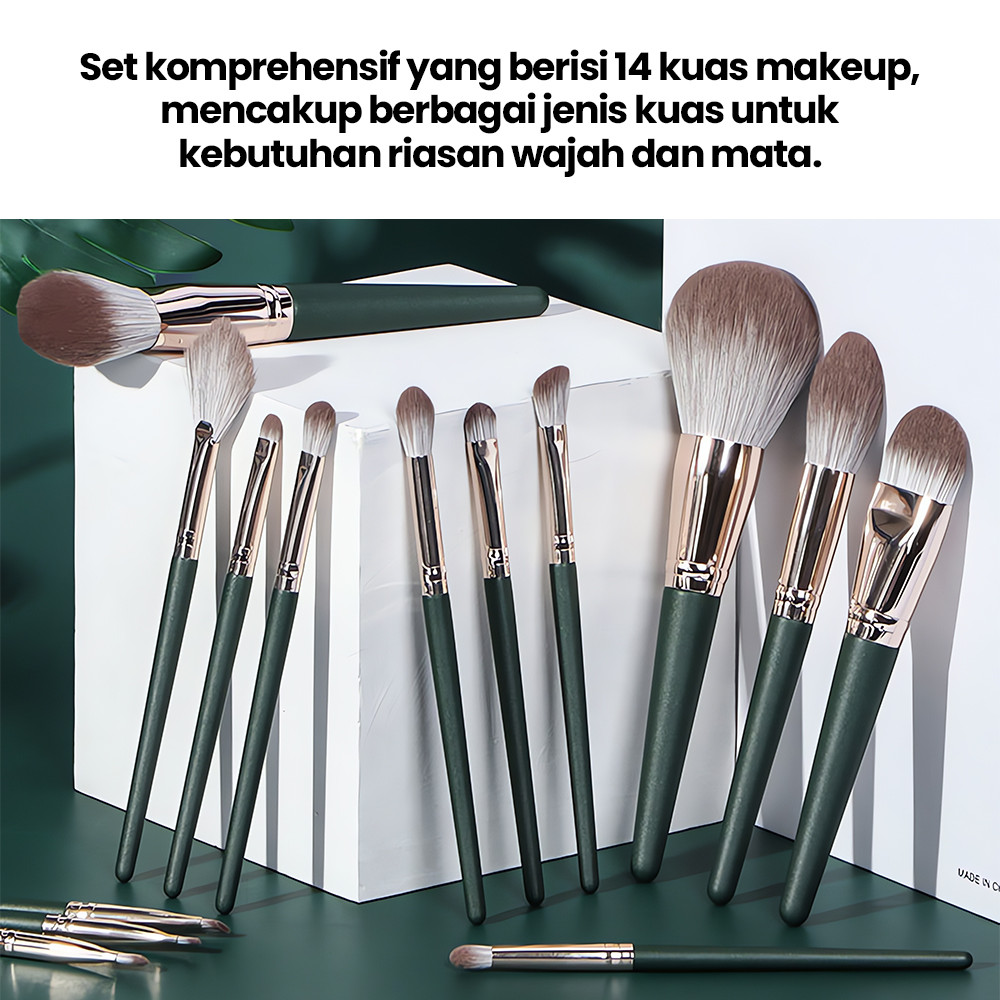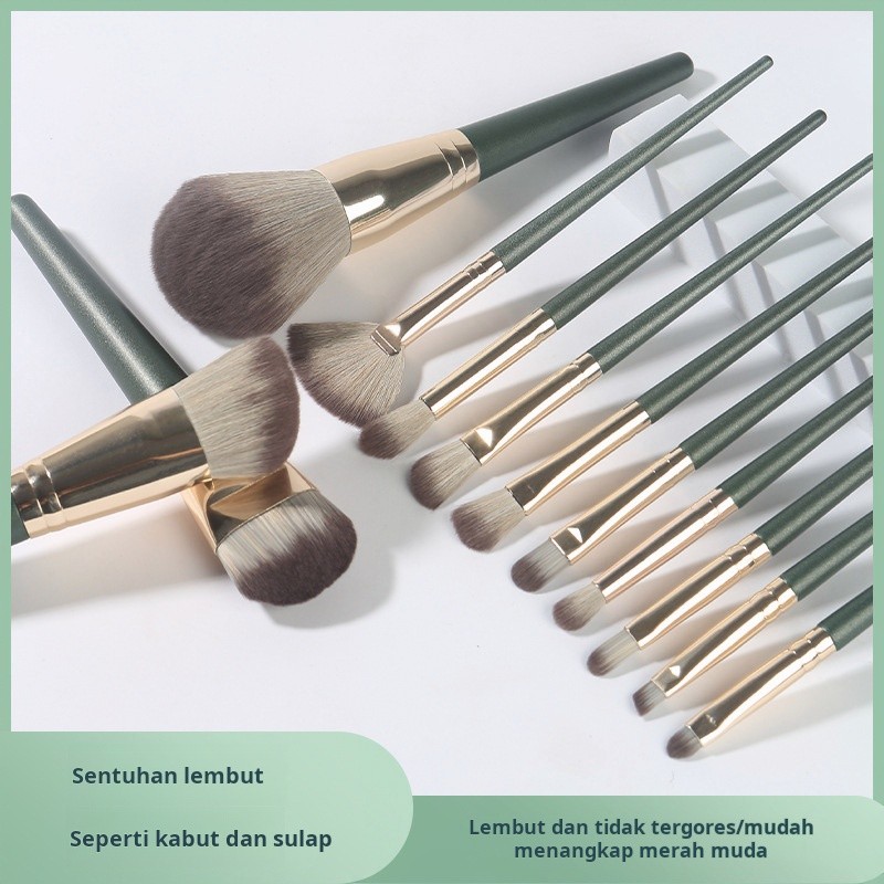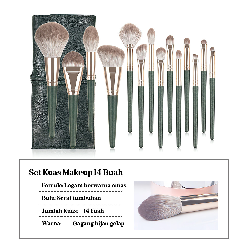 Set Kuas Makeup 14 Buah Green Cloud Baru, Kuas Bedak Tabur, Set Lengkap Kuas Eye Shadow, Kuas Perona Pipi, Peralatan Mak