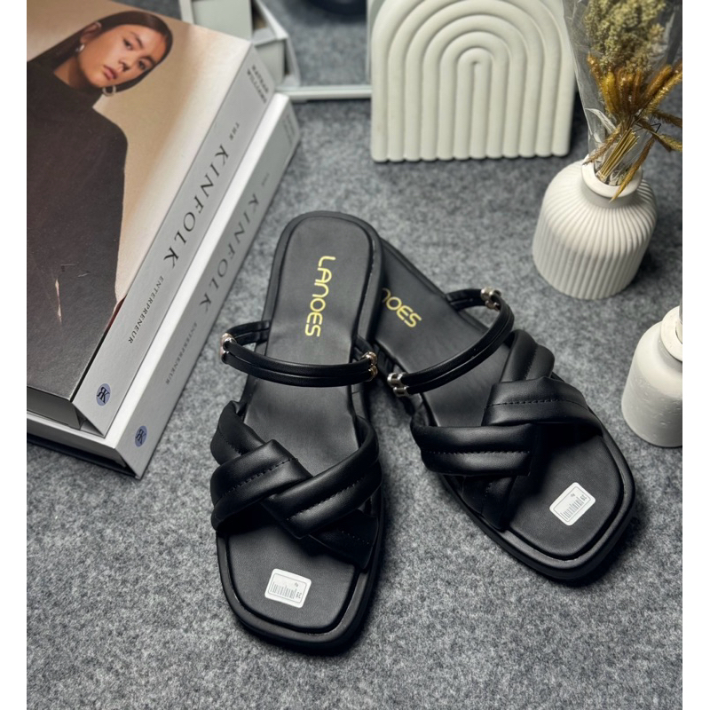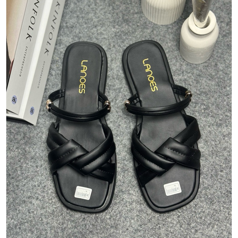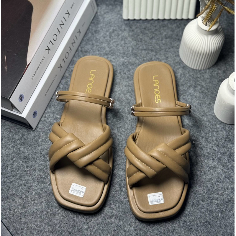 LANOES Sandal Platform Wanita Korean style Silang Tali Belakang Anti Slip Terbaru Kekinian 2025
