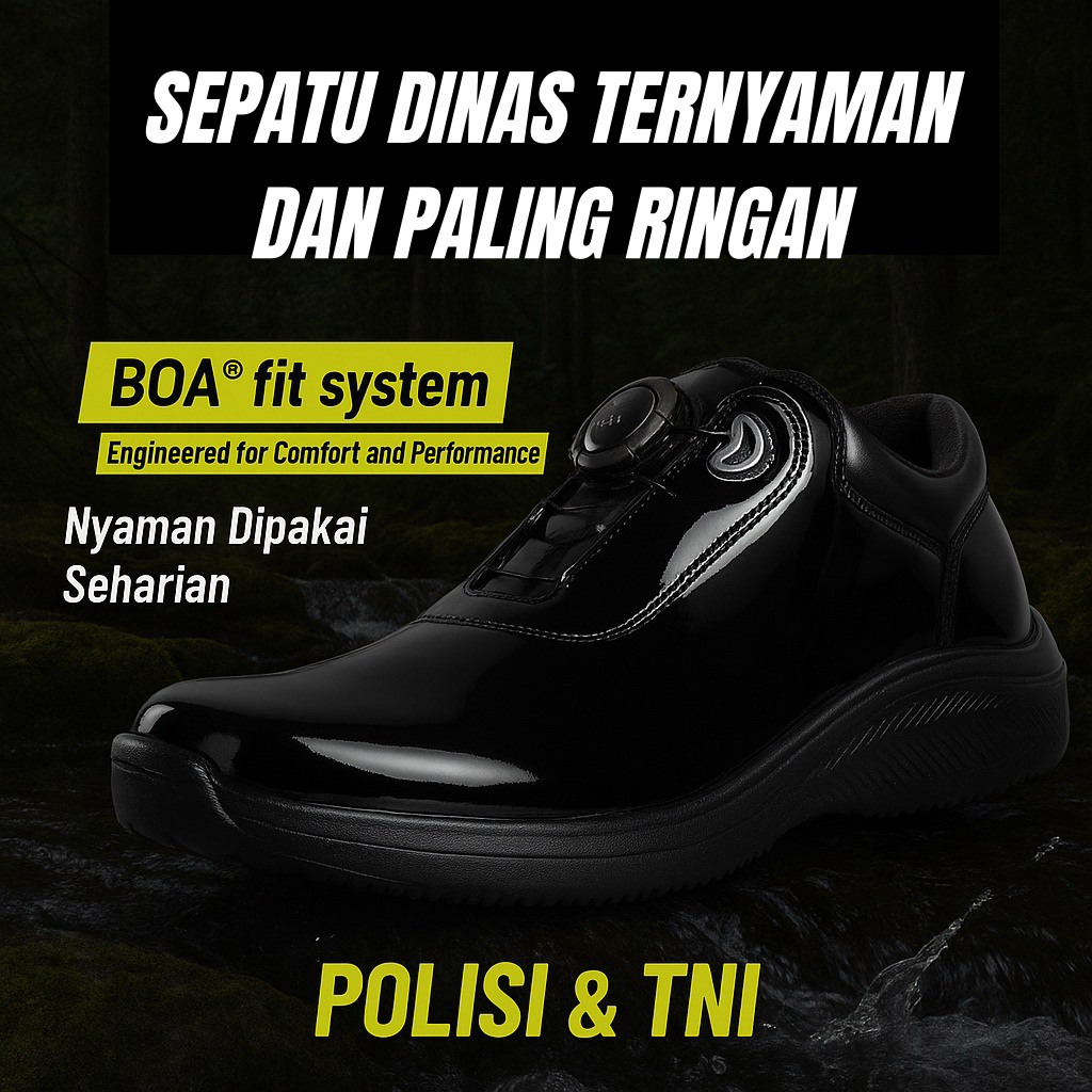 Sepatu PDH TNI POLRI Boa Tali Putar Dinas Ringan Nyaman