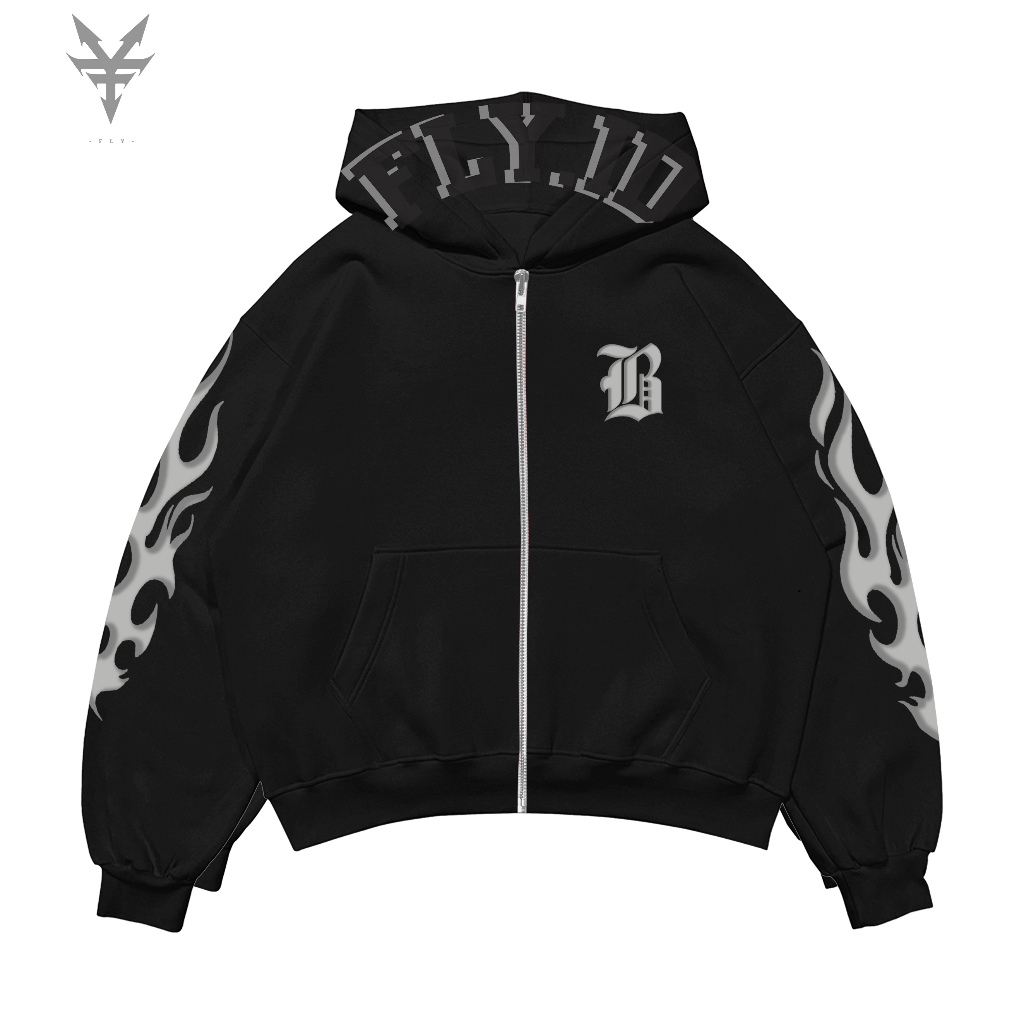 hoodie boxy dan zipper boxy unisex hitam 280GSM