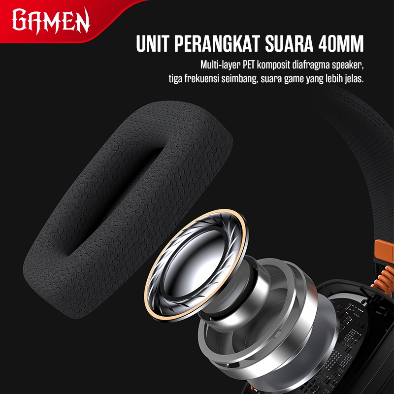 GAMEN Headset Bluetooth 5.3 Gaming Wireless 3 Mode Koneksi Low Latency Driver 40mm Shadow Lite Black Baterai Tahan Lama