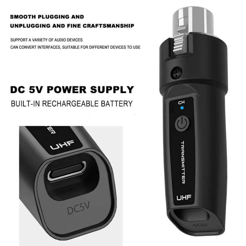 UHF XLR Adapter System Wireless Microphone Transmitter Receiver System for Dynamic Mic Guitar Bass Keyboard Alat Musik A