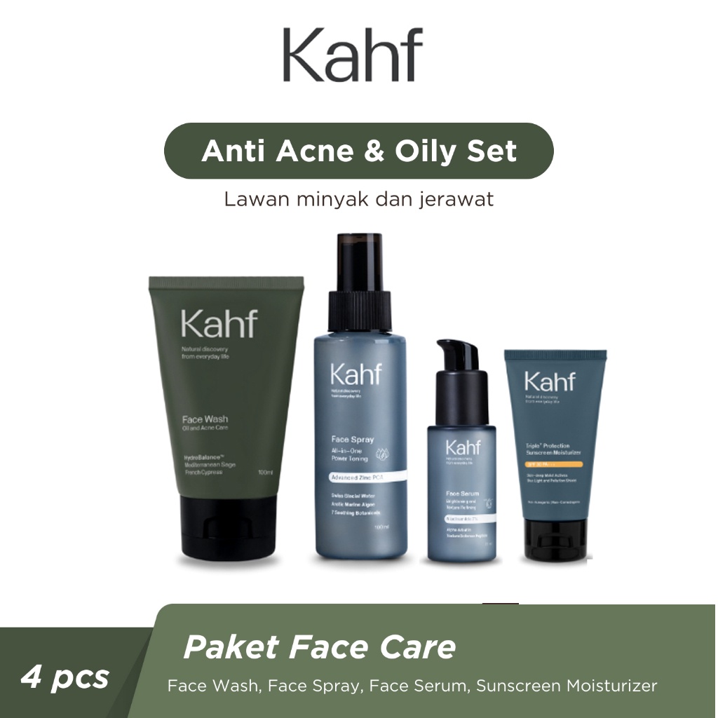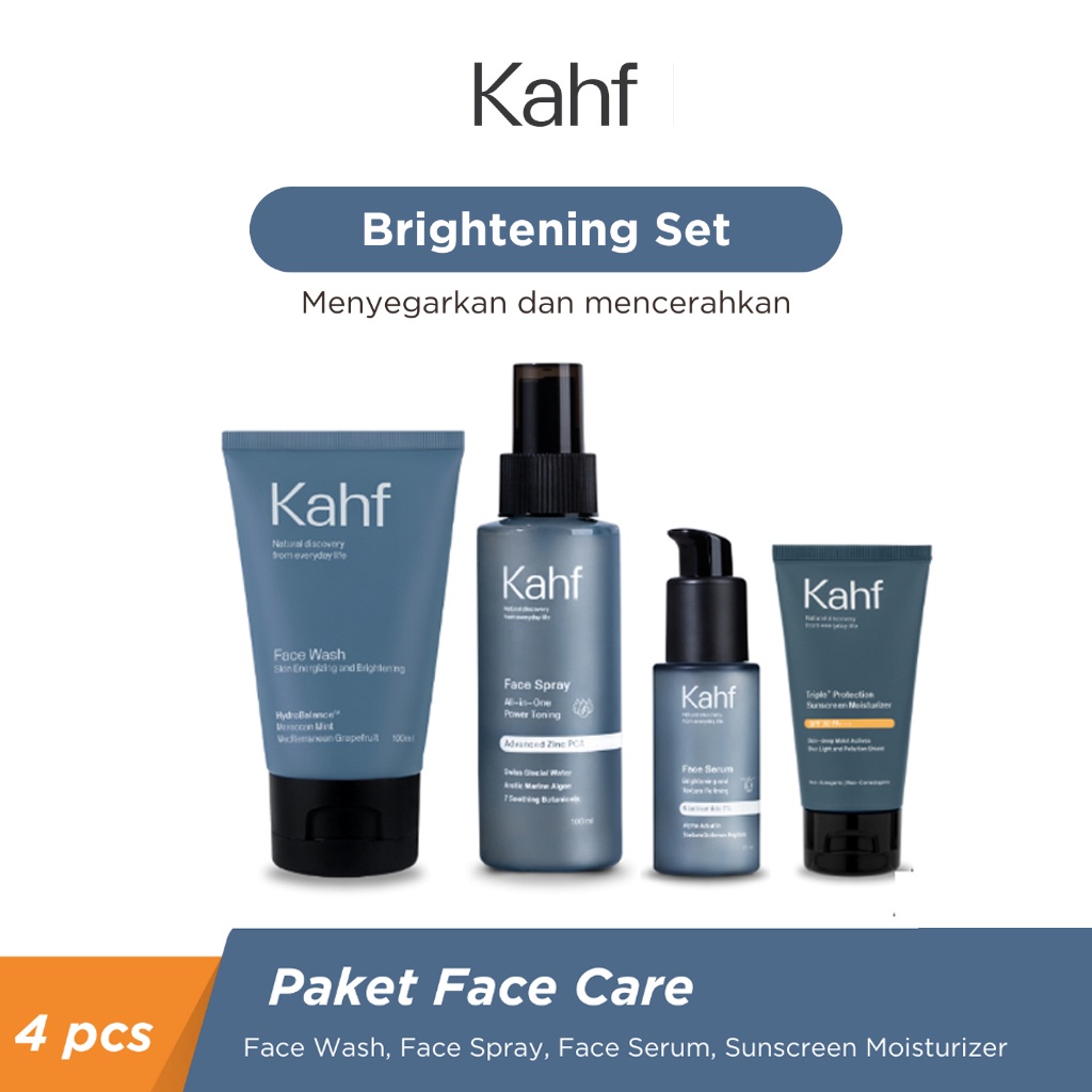 Kahf Paket isi 4 Skincare Pria Facial Foam + Face Serum + Face Spary + Sunscreen SPF 30 PA+++