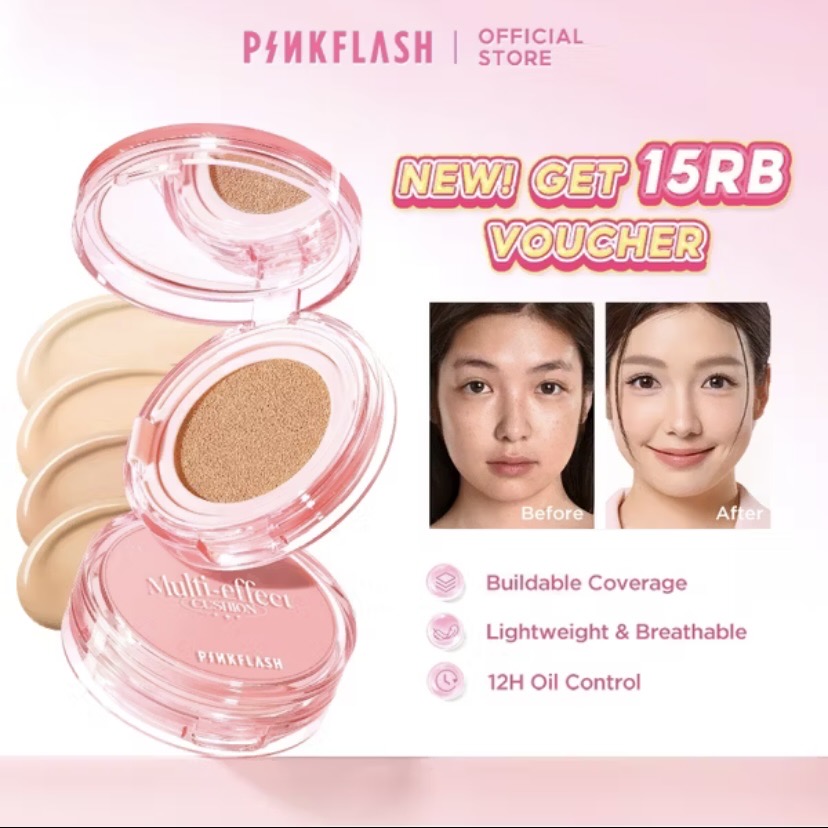 【NEW】PINKFLASH Skin-Like Multi-Effect Cushion Lasting Lightweight Breathable Buildable Coverage Waterproof