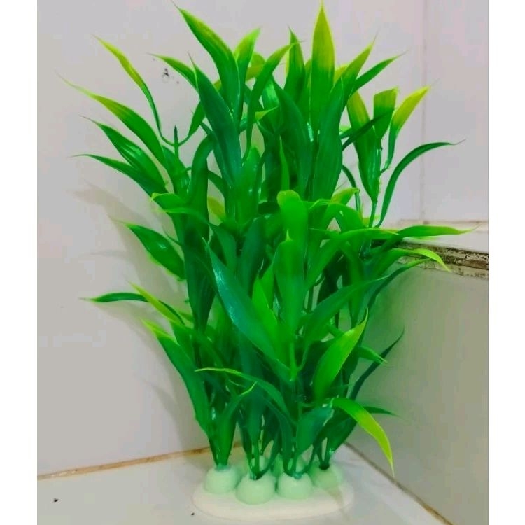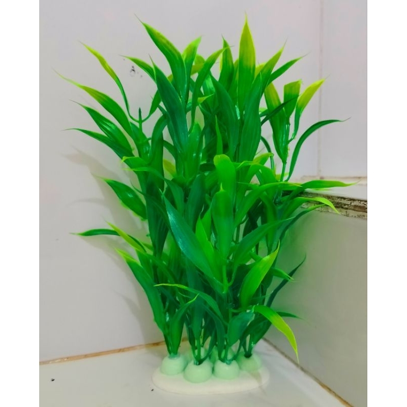 Ornamen tanaman aquarium pelastik ilalang sulur warna hijau kuning tinggi 25cm
