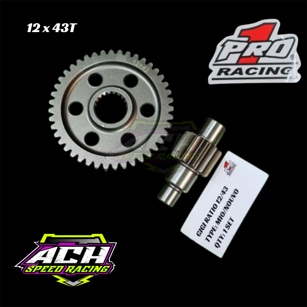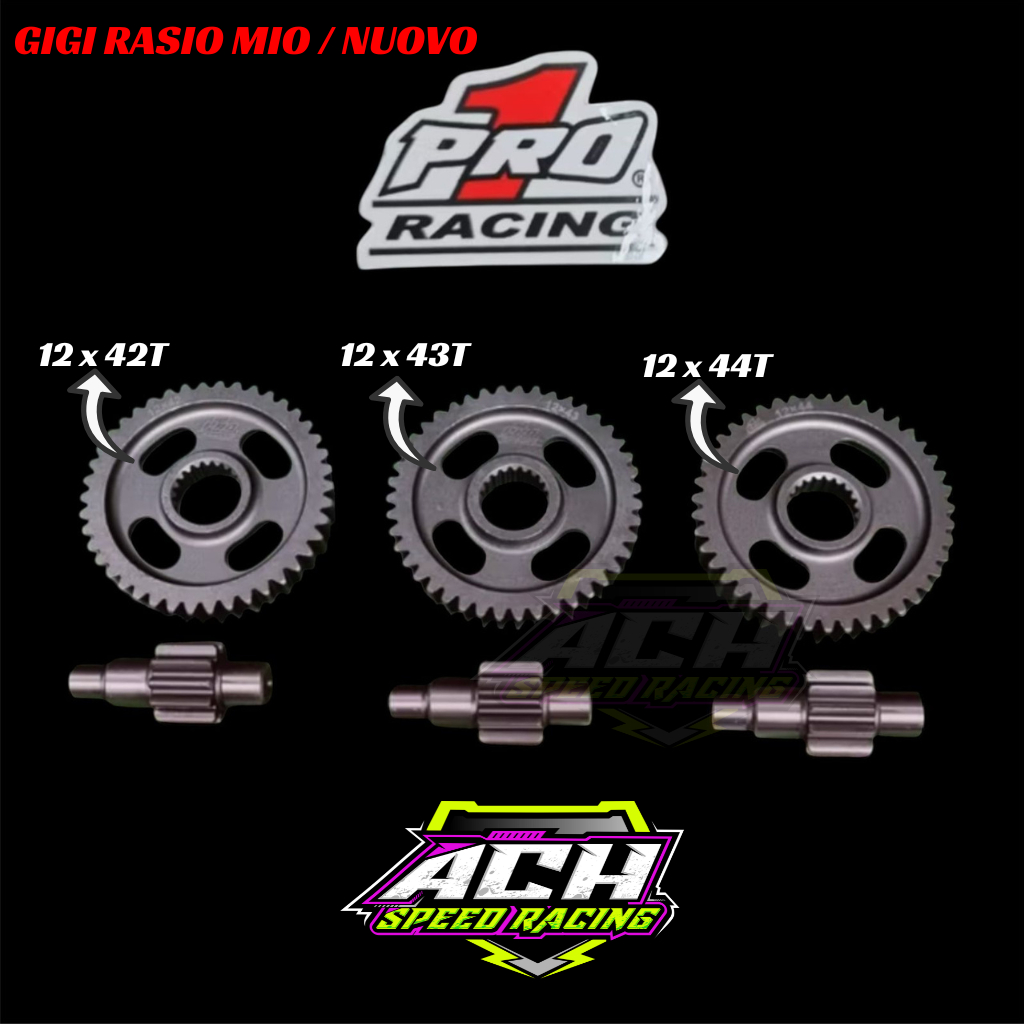 GIGI RASIO 12/42T | 12/43T | 12/44T MIO SPORTY / MIO SOUL / MIO SMILE / NOUVO KARBU GEAR RATIO YAMAHA PRO1 RACING