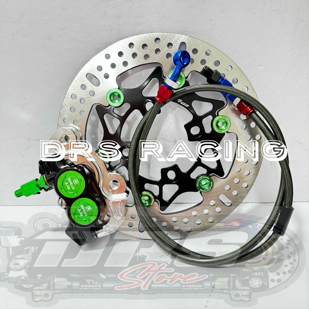 PAKET KALIPER FORMULA 4 PISTON R/T STAGE + DISC BRAKE FLOATING 220MM + SELANG REM DEPAN PSI 95CM + BREKET JUPITER BURHAN