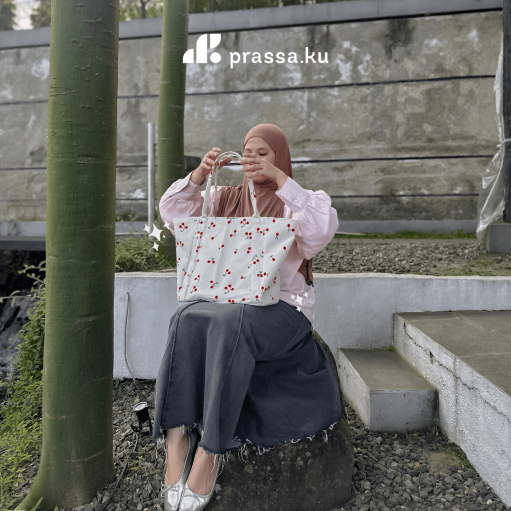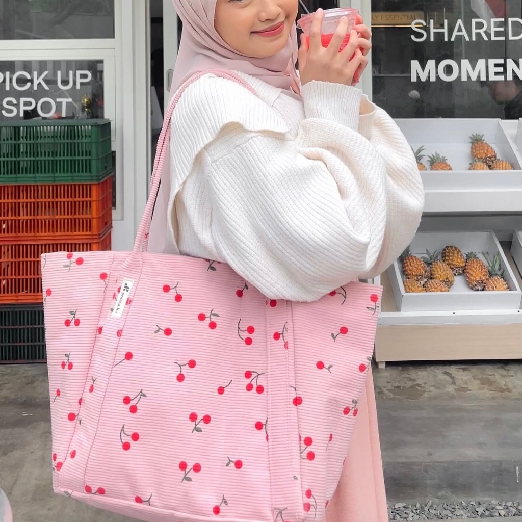 Prassa.ku - Melle Cherry Totebag Corduroy Tebal