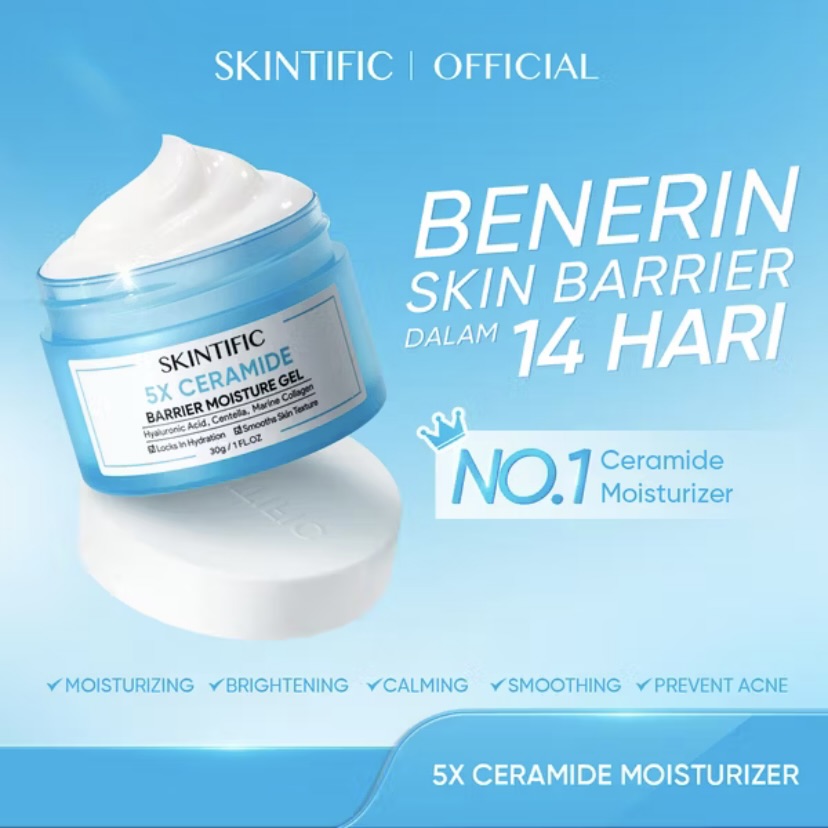 SKINTIFIC - 5X Ceramide Barrier Moisturizer Gel 30g | Cream pencerah Wajah Calming Whitening Brightening Dark Spot