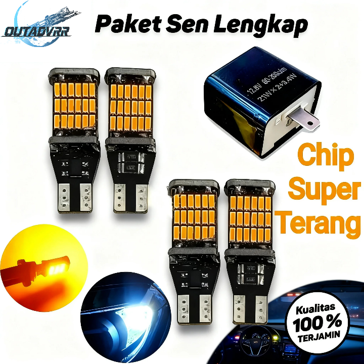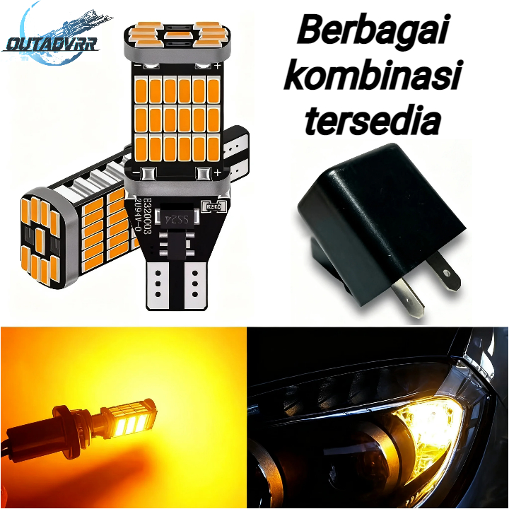 Paket Murah 4 PCS Lampu Sen Dajjal + Flasher 45 LED Kuning Super Terang Universal Sein Kedip (Cepat & Lambat) Motor Beat Mio Vario Kuning